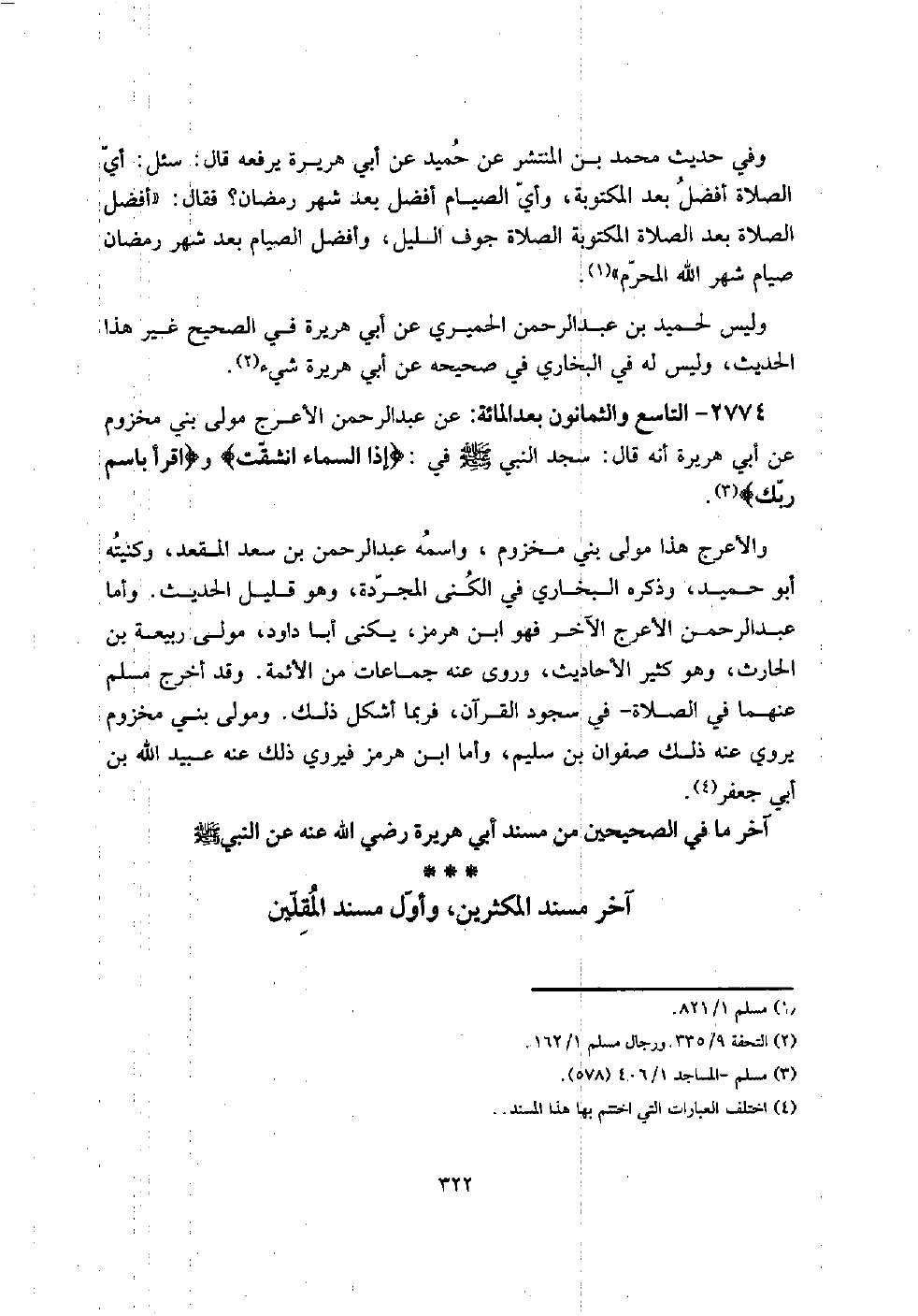 آخر مُسْند المكثرين، وَأول مُسْند المقلين