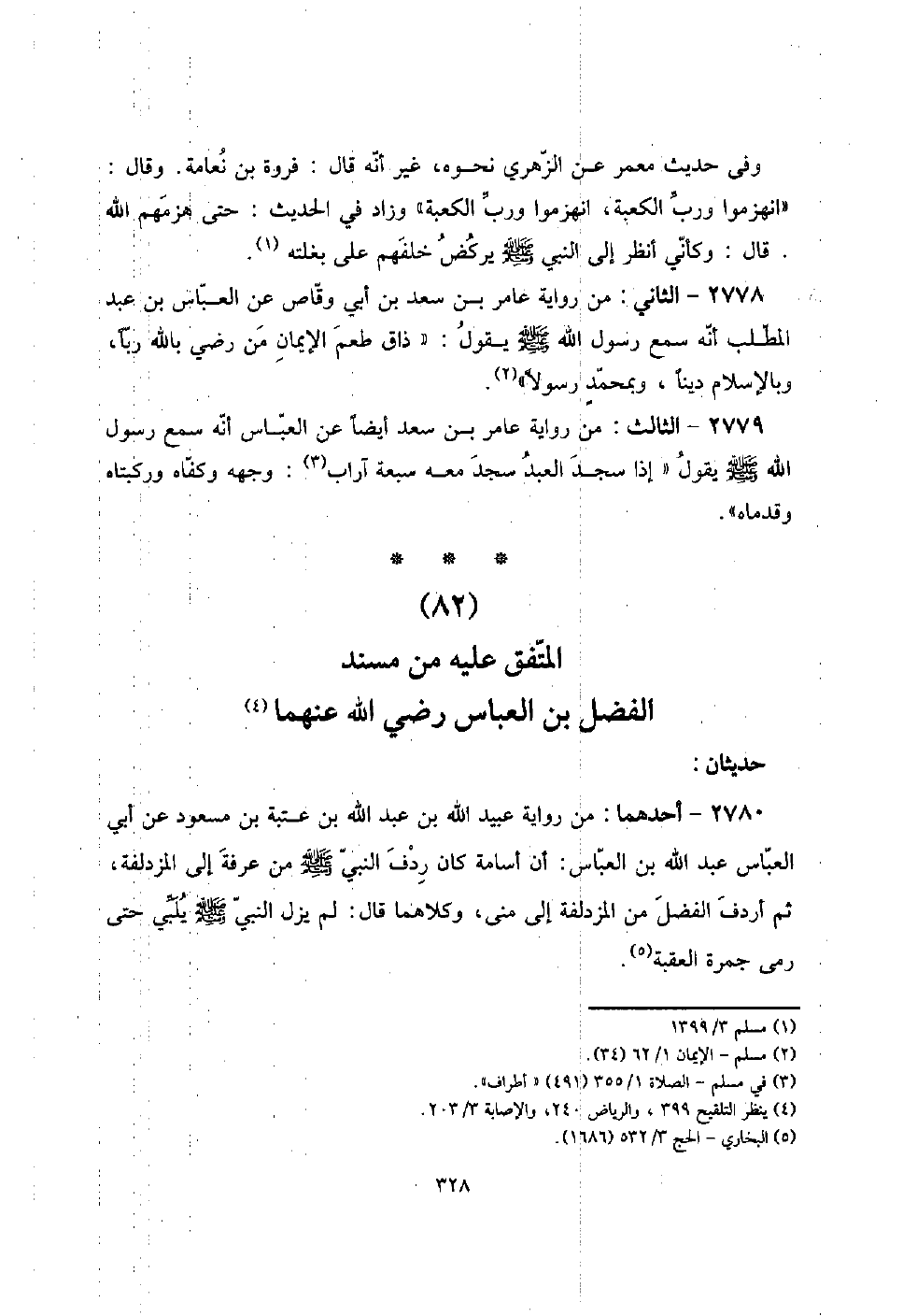 (82) الْمُتَّفق عَلَيْهِ من مُسْند الْفضل بن الْعَبَّاس رَضِي الله عَنْهُمَا