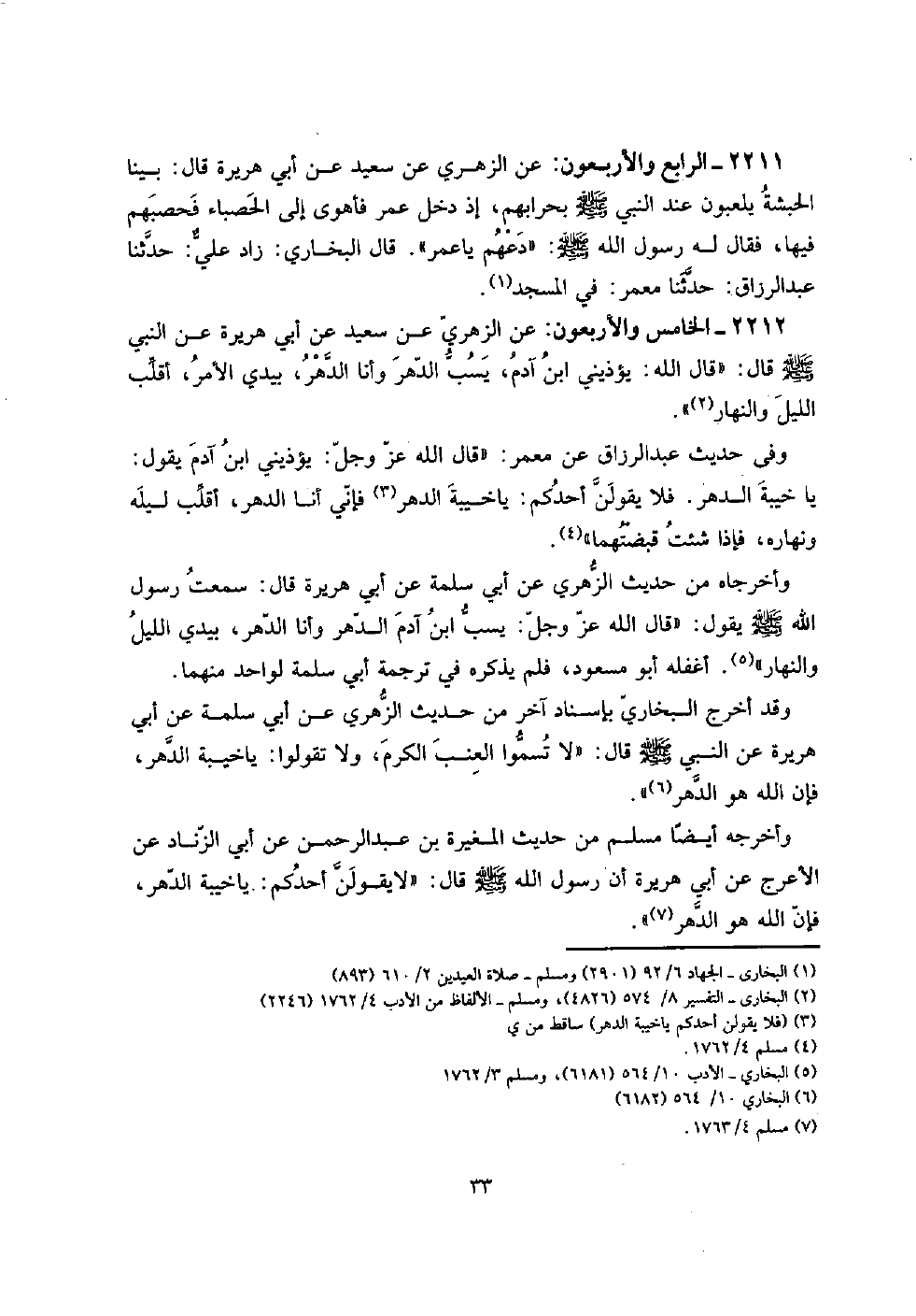2212 - الْخَامِس وَالْأَرْبَعُونَ: عَن الزُّهْرِيّ عَن سعيد عَن أبي هُرَيْرَة عَن النَّبِي صلى الله عَلَيْهِ وَسلم قَالَ: " قَالَ الله: يُؤْذِينِي ابْن آدم، يسب الدَّهْر وَأَنا الدَّهْر، بيَدي الْأَمر، أقلب اللَّيْل وَالنَّهَار ".