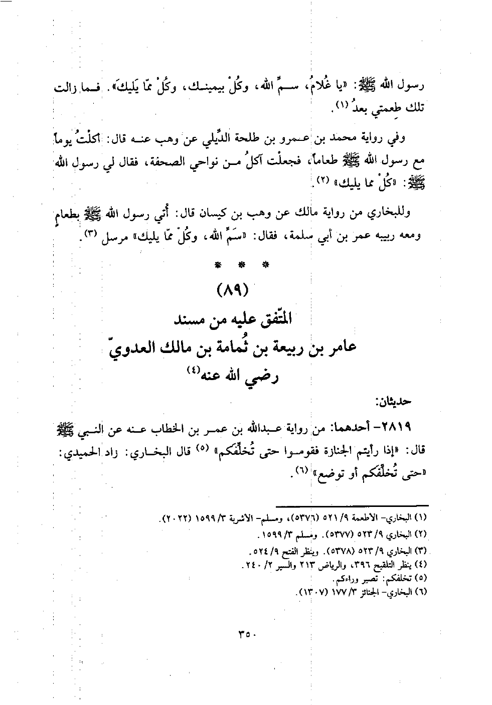 (89) الْمُتَّفق عَلَيْهِ من مُسْند عَامر بن ربيعَة بن ثُمَامَة بن مَالك الْعَدوي رَضِي الله عَنهُ