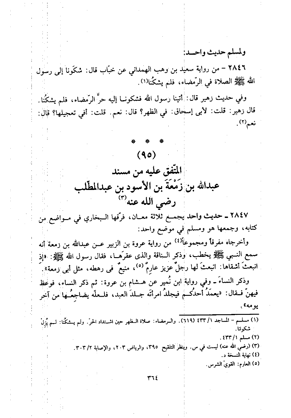 (95) الْمُتَّفق عَلَيْهِ من مُسْند عبد الله بن زَمعَة بن الْأسود بن عبد الْمطلب رَضِي الله عَنهُ