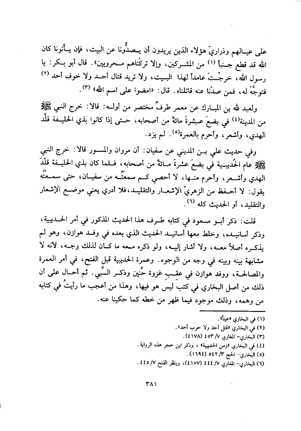 أَن مَرْوَان والمسور قَالَا: خرج النَّبِي صلى الله عَلَيْهِ وَسلم عَام الْحُدَيْبِيَة فِي بضع عشرَة مائَة من أَصْحَابه، فَلَمَّا كَانَ بِذِي الحليفة قلد الْهَدْي وأشعر، وَأحرم مِنْهَا، لَا أحصي كم سمعته من سُفْيَان، حَتَّى سمعته يَقُول: لَا أحفظ من الزُّهْرِيّ الْإِشْعَار والتقليد، فَلَا أَدْرِي يَعْنِي مَوضِع الْإِشْعَار والتقليد، أَو الحَدِيث كُله.