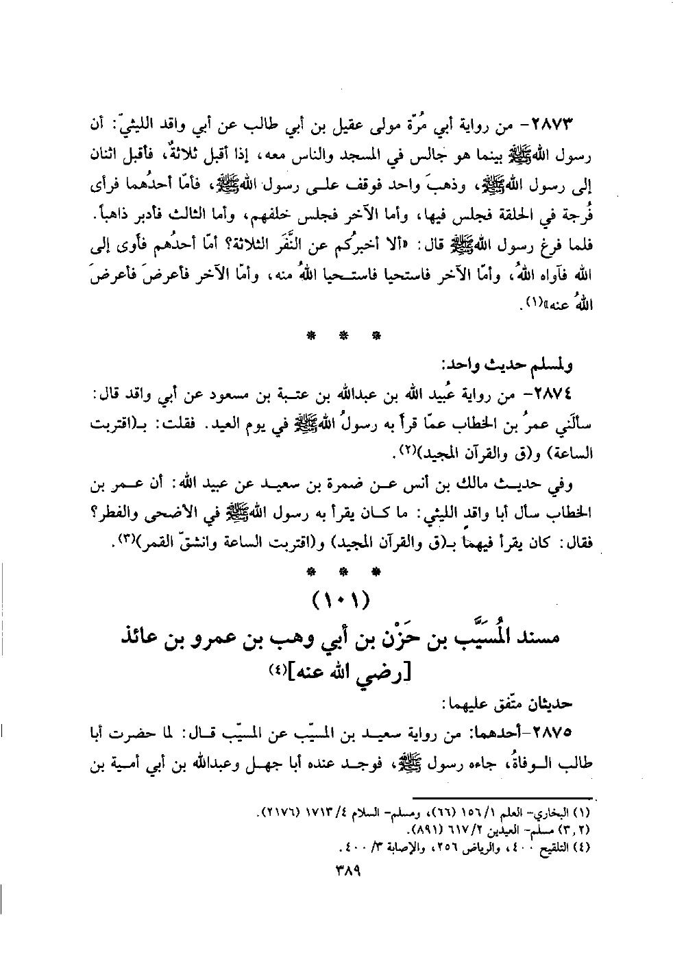 (101) مُسْند الْمسيب بن حزن بن أبي وهب بن عَمْرو بن عَائِذ [رَضِي الله عَنهُ]