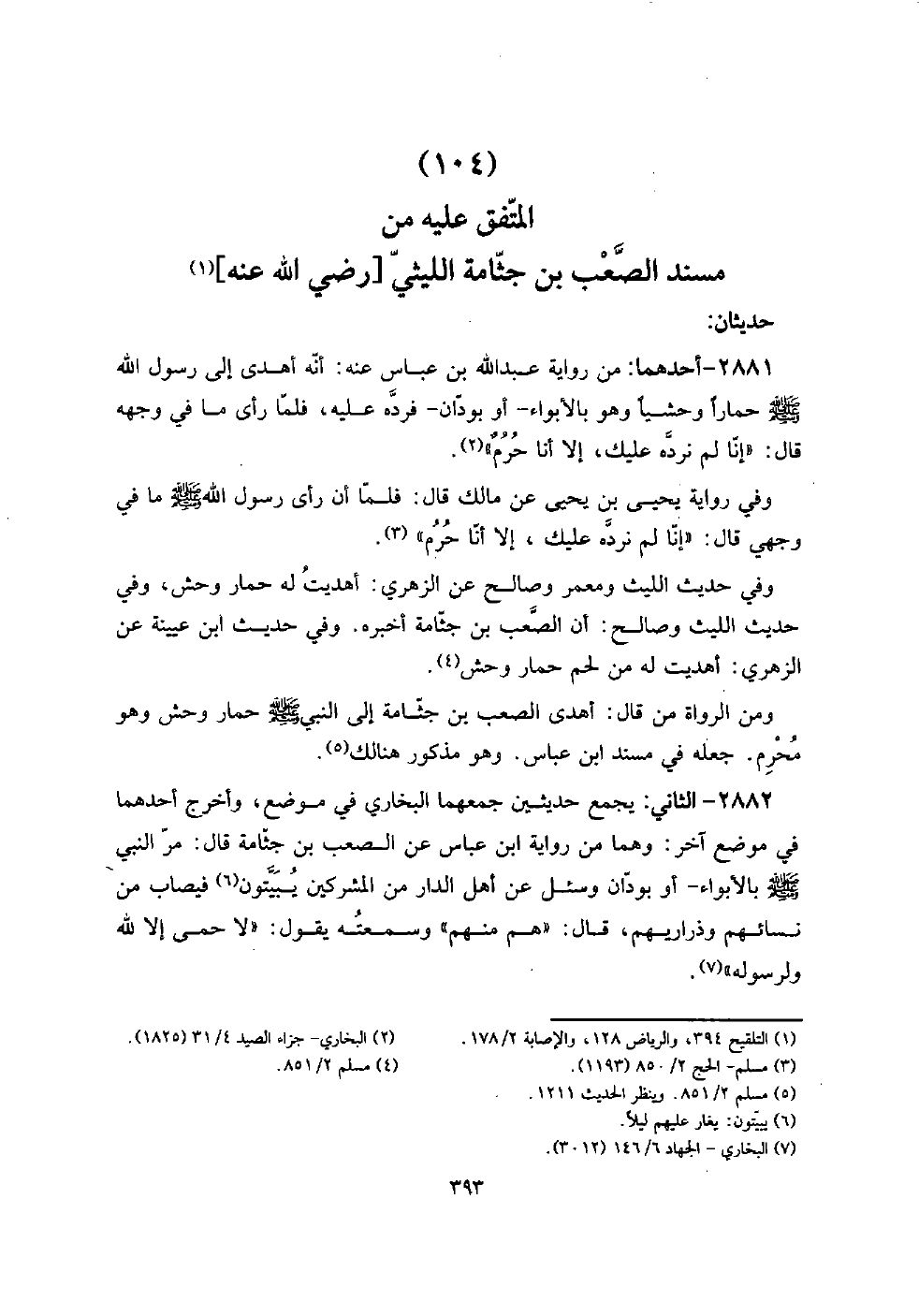 (104) الْمُتَّفق عَلَيْهِ من مُسْند الصعب بن جثامة اللَّيْثِيّ [رَضِي الله عَنهُ]