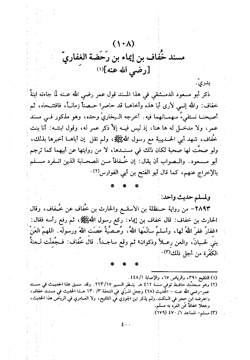 (108) مُسْند خفاف بن إِيمَاء بن رحضة الْغِفَارِيّ [رَضِي الله عَنهُ]