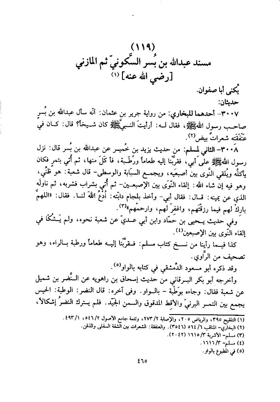 (119) مُسْند عبد الله بن بسر السكونِي ثمَّ الْمَازِني [رَضِي الله عَنهُ]