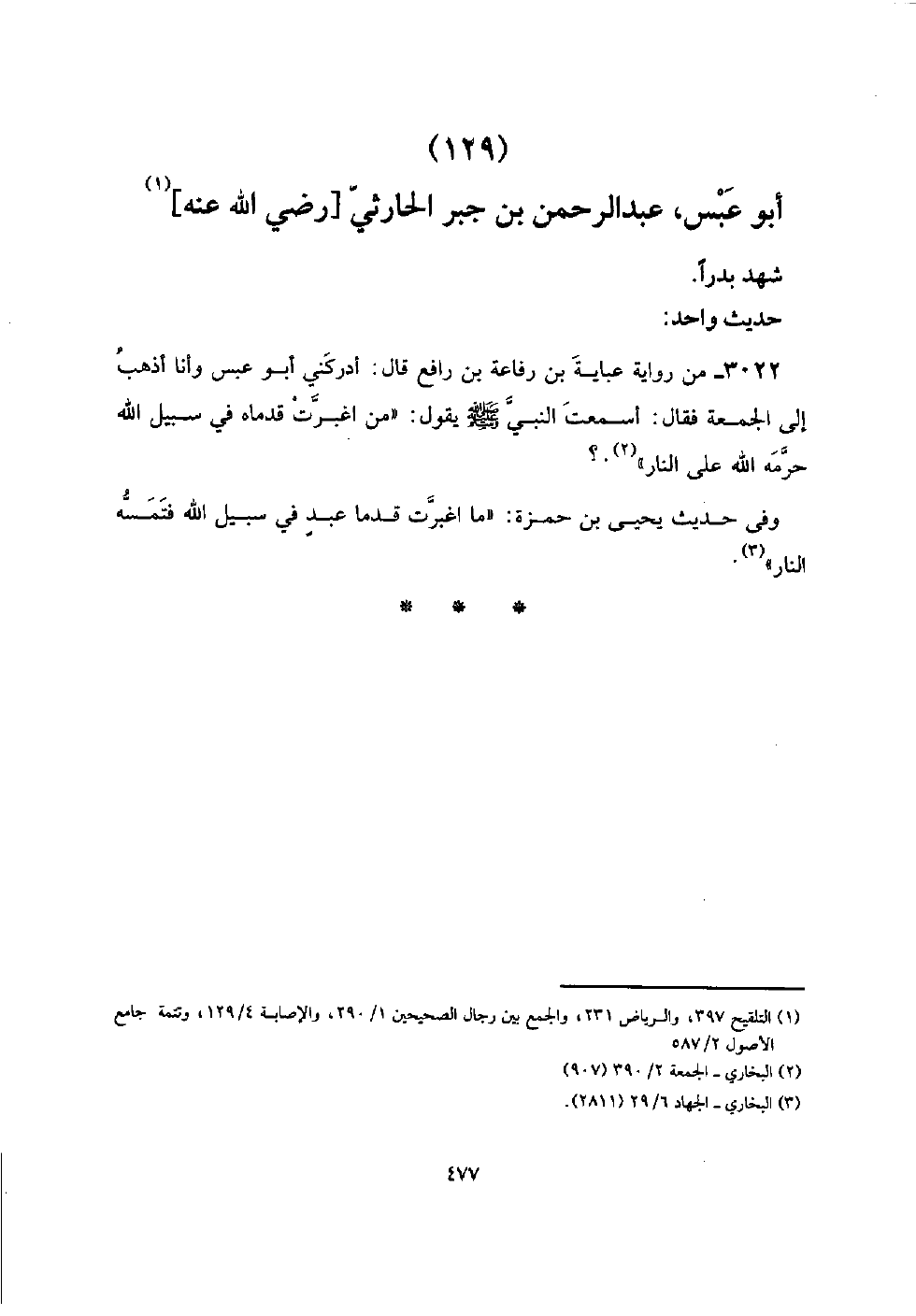 (129) أَبُو عبس، عبد الرَّحْمَن بن جبر الْحَارِثِيّ [رَضِي الله عَنهُ]