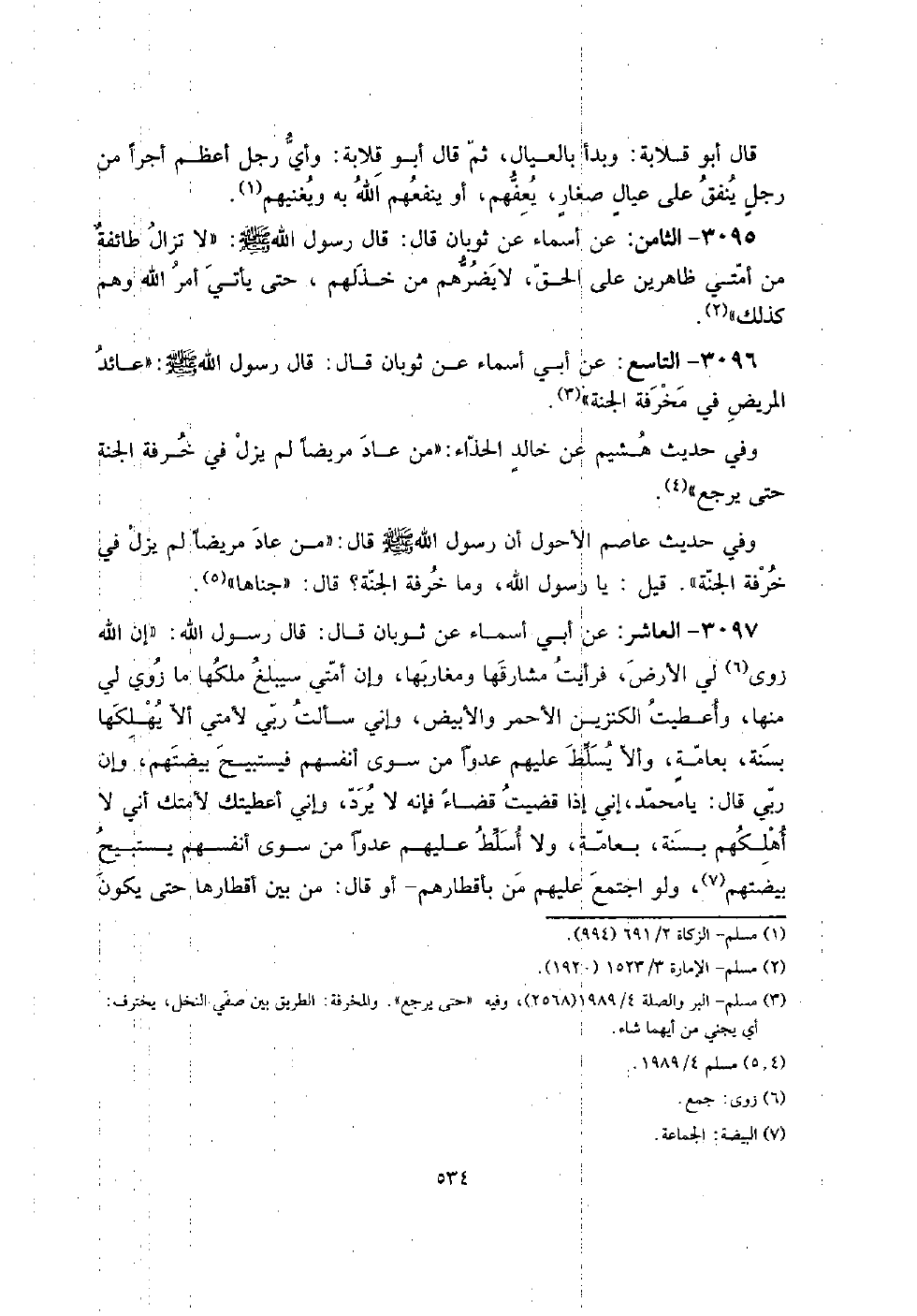 3096 - التَّاسِع: عَن أبي أَسمَاء عَن ثَوْبَان قَالَ: قَالَ رَسُول الله صلى الله عَلَيْهِ وَسلم: " عَائِذ الْمَرِيض فِي مخرفة الْجنَّة ".