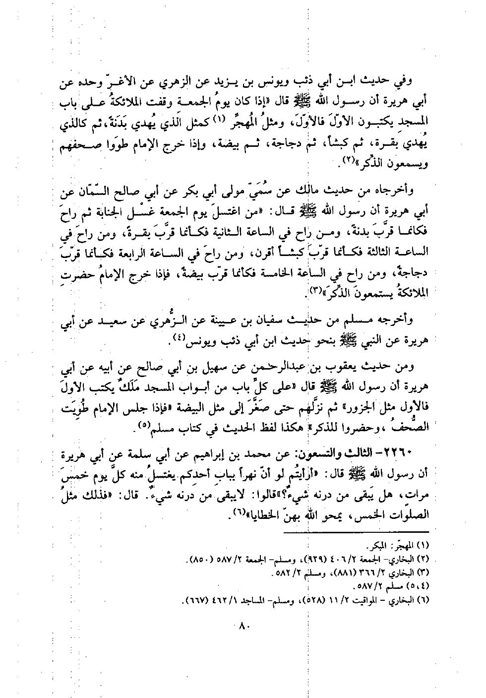 على كل بَاب من أَبْوَاب الْمَسْجِد ملكٌ يكْتب الأول فَالْأول مثل الْجَزُور " ثمَّ نزلهم حَتَّى صغر إِلَى مثل الْبَيْضَة " فَإِذا جلس الإِمَام طويت الصُّحُف، وحضروا للذّكر " هَكَذَا لفظ الحَدِيث فِي كتاب مُسلم.