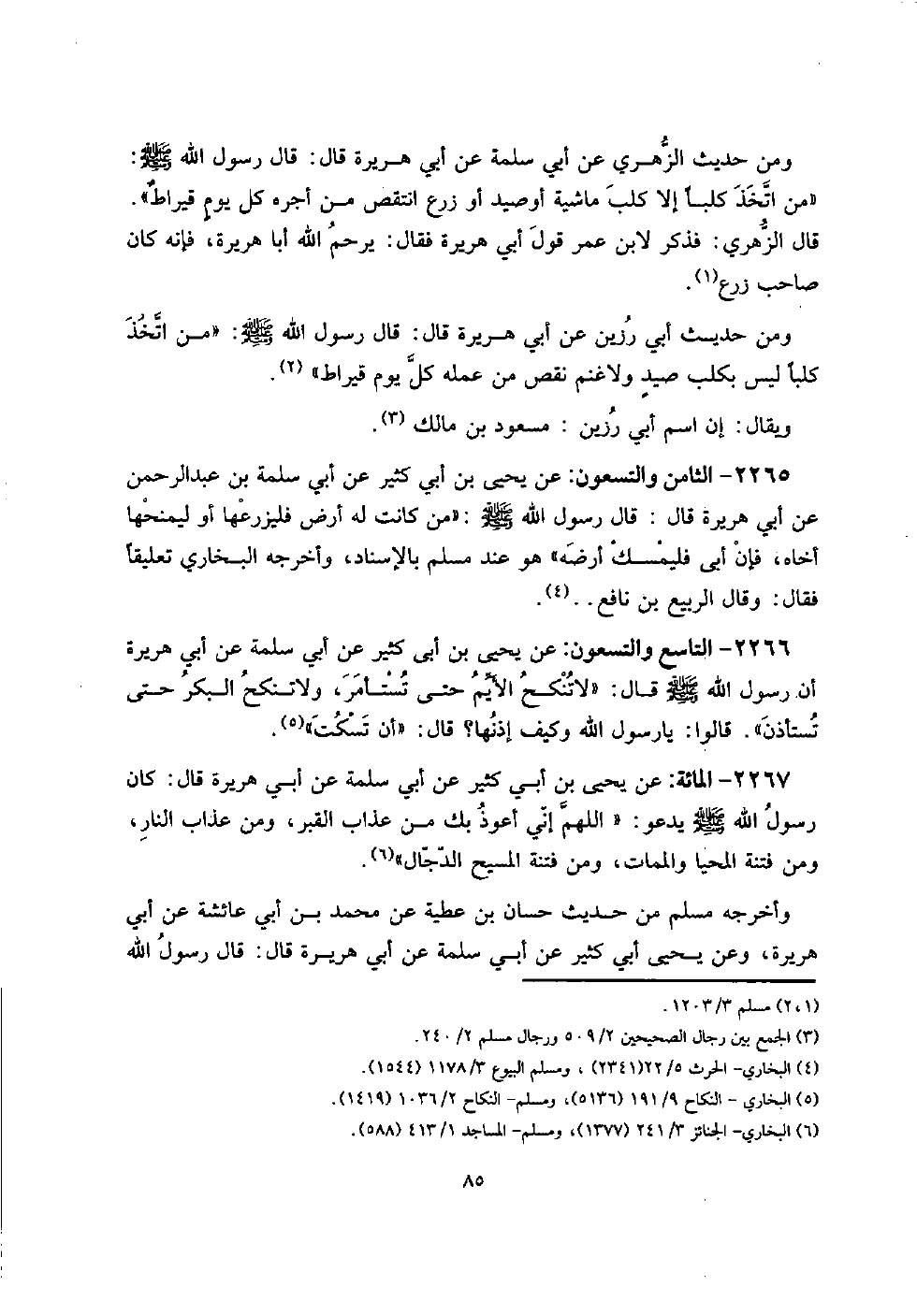 2265 - الثَّامِن وَالتِّسْعُونَ: عَن يحيى بن أبي كثير عَن أبي سَلمَة بن عبد الرَّحْمَن عَن أبي هُرَيْرَة قَالَ: قَالَ رَسُول الله صلى الله عَلَيْهِ وَسلم: من كَانَت لَهُ أَرض فليزرعها أَو ليمنحها أَخَاهُ، فَإِن أَبى فليمسك أرضه " هُوَ عِنْد مُسلم بِالْإِسْنَادِ، وَأخرجه البُخَارِيّ تَعْلِيقا فَقَالَ: وَقَالَ الرّبيع بن نَافِع ...