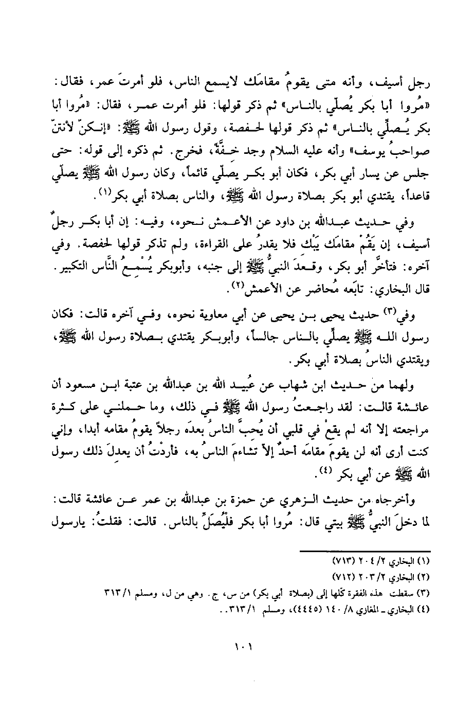 لقد راجعت رَسُول الله صلى الله عَلَيْهِ وَسلم فِي ذَلِك، وَمَا حَملَنِي على كَثْرَة مُرَاجعَته إِلَّا أَنه لم يَقع فِي قلبِي أَن يحب النَّاس بعده رجلا يقوم مقَامه أبدا، وَإِنِّي كنت أرى أَنه لن يقوم مقَامه أحدٌ إِلَّا تشاءم النَّاس بِهِ، فَأَرَدْت أَن يعدل ذَلِك رَسُول الله صلى الله عَلَيْهِ وَسلم عَن أبي بكر.