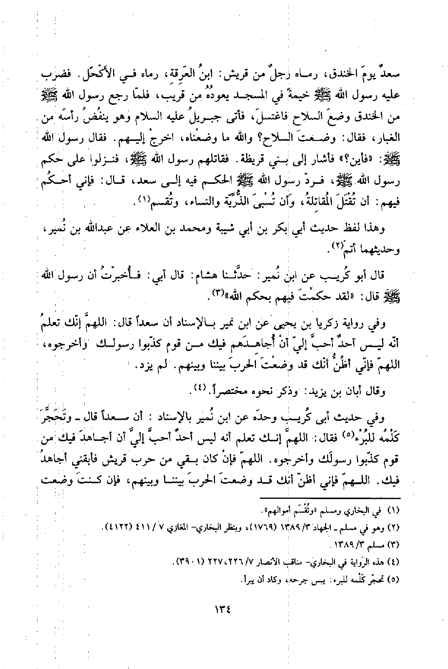 أَن سَعْدا قَالَ - وتحجر كَلمه للبرء فَقَالَ: اللَّهُمَّ إِنَّك تعلم أَنه لَيْسَ أحدٌ أحب إِلَيّ أَن أجاهد فِيك من قوم كذبُوا رَسُولك وأخرجوه. اللَّهُمَّ فَإِن كَانَ بَقِي من حَرْب قُرَيْش فأبقني أجاهد فِيك. اللَّهُمَّ فَإِنِّي أَظن أَنَّك قد وضعت الْحَرْب بَيْننَا وَبينهمْ، فَإِن كنت وضعت