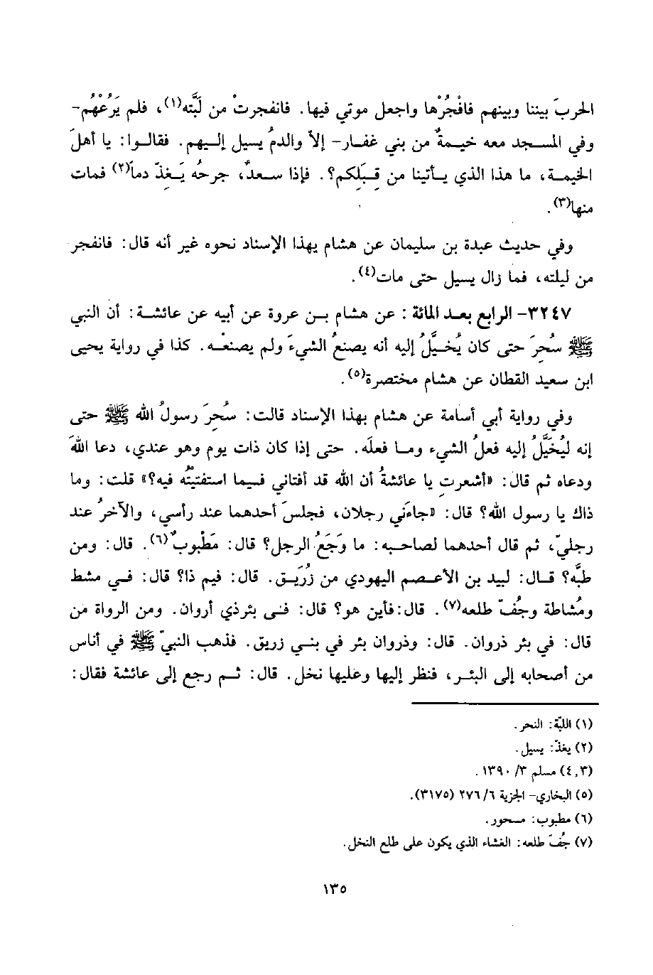 3247 - الرَّابِع بعد الْمِائَة: عَن هِشَام بن عُرْوَة عَن أَبِيه عَن عَائِشَة: أَن النَّبِي صلى الله عَلَيْهِ وَسلم سحر حَتَّى كَانَ يخيل إِلَيْهِ أَنه يصنع الشَّيْء وَلم يصنعه. كَذَا فِي رِوَايَة يحيى ابْن سعيد الْقطَّان عَن هِشَام مختصرة.