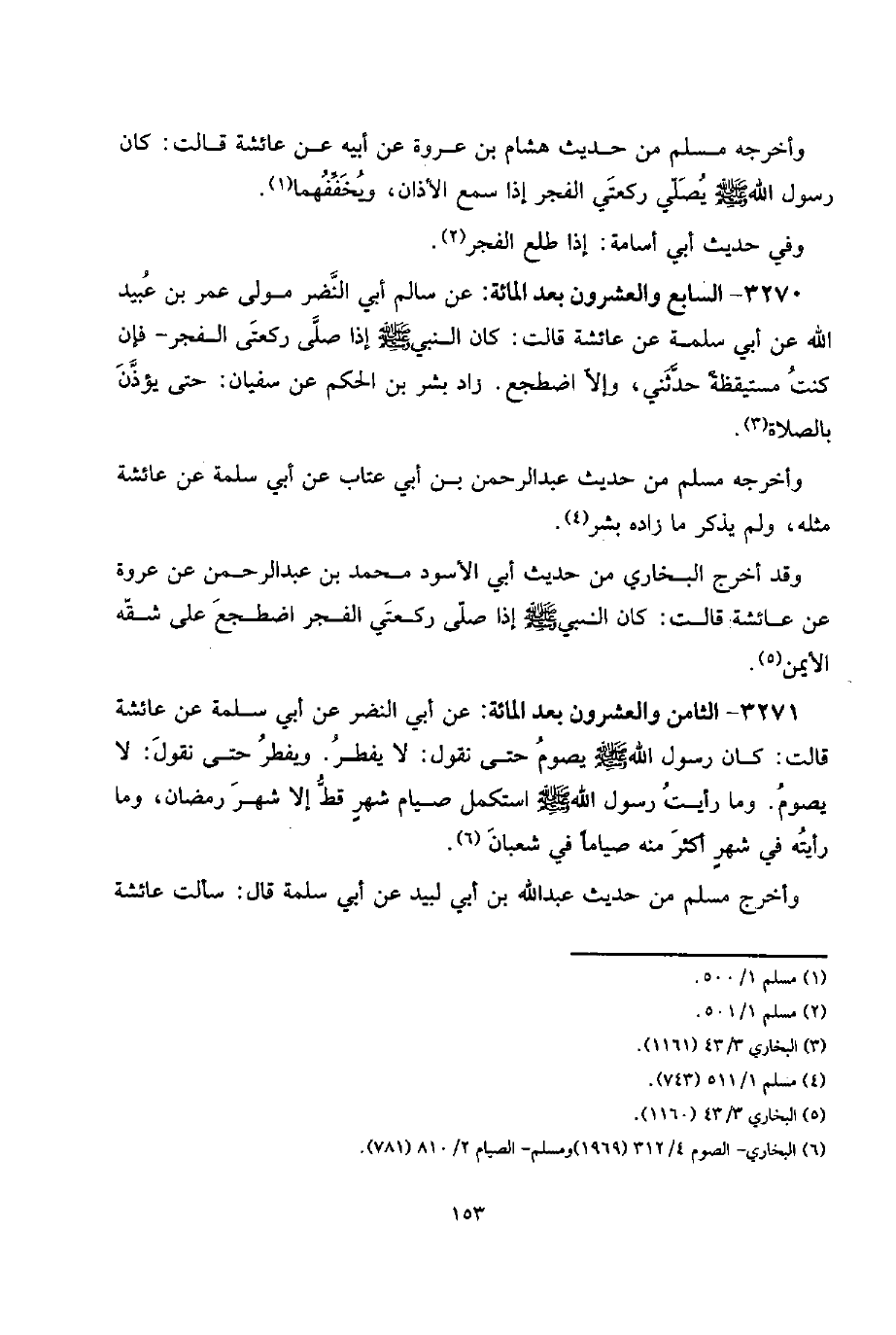 3271 - الثَّامِن وَالْعشْرُونَ بعد الْمِائَة: عَن أبي النَّضر عَن أبي سَلمَة عَن عَائِشَة قَالَت: كَانَ رَسُول الله صلى الله عَلَيْهِ وَسلم يَصُوم حَتَّى نقُول: لَا يفْطر. وَيفْطر حَتَّى نقُول: لَا يَصُوم. وَمَا رَأَيْت رَسُول الله صلى الله عَلَيْهِ وَسلم اسْتكْمل صِيَام شهرٍ قطّ إِلَّا شهر رَمَضَان، وَمَا رَأَيْته فِي شهرٍ أَكثر مِنْهُ صياما فِي شعْبَان.