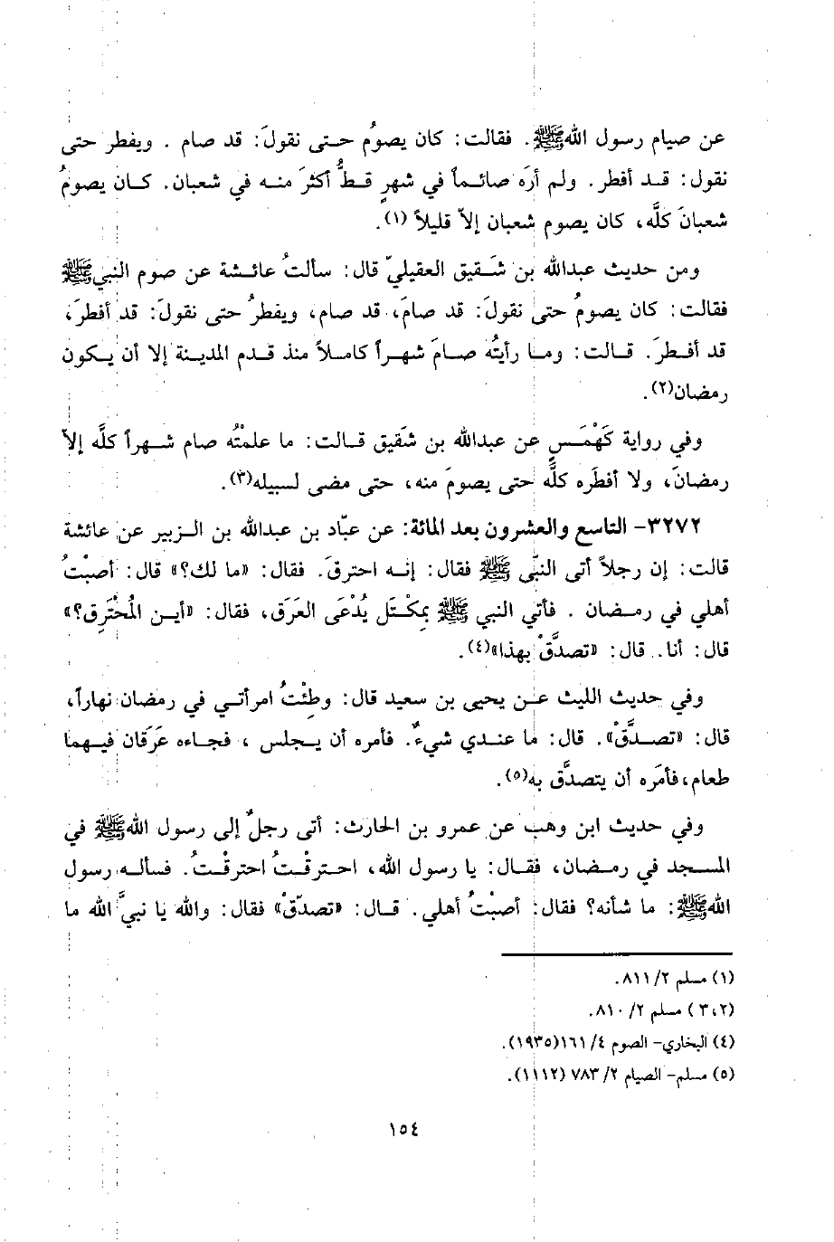 3272 - التَّاسِع وَالْعشْرُونَ بعد الْمِائَة: عَن عباد بن عبد الله بن الزبير عَن عَائِشَة قَالَت: إِن رجلا أَتَى النَّبِي صلى الله عَلَيْهِ وَسلم فَقَالَ: إِنَّه احْتَرَقَ. فَقَالَ: " مَا لَك؟ " قَالَ: أصبت أَهلِي فِي رَمَضَان. فَأتي النَّبِي صلى الله عَلَيْهِ وَسلم بمكتل يدعى الْعرق، فَقَالَ: " أَيْن المحترق؟ " قَالَ: أَنا. قَالَ: " تصدق بِهَذَا ".