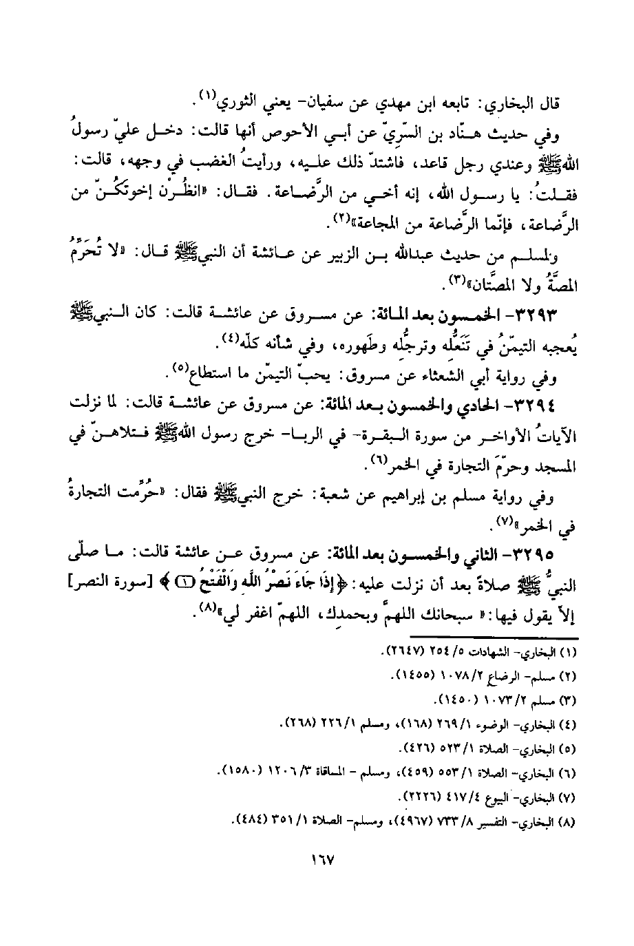 3295 - الثَّانِي وَالْخَمْسُونَ بعد الْمِائَة: عَن مَسْرُوق عَن عَائِشَة قَالَت: مَا صلى النَّبِي صلى الله عَلَيْهِ وَسلم صَلَاة بعد أَن نزلت عَلَيْهِ: {إِذا جَاءَ نصر الله وَالْفَتْح} [سُورَة النَّصْر] إِلَّا يَقُول فِيهَا: " سُبْحَانَكَ اللَّهُمَّ وَبِحَمْدِك، اللَّهُمَّ اغْفِر لي ".