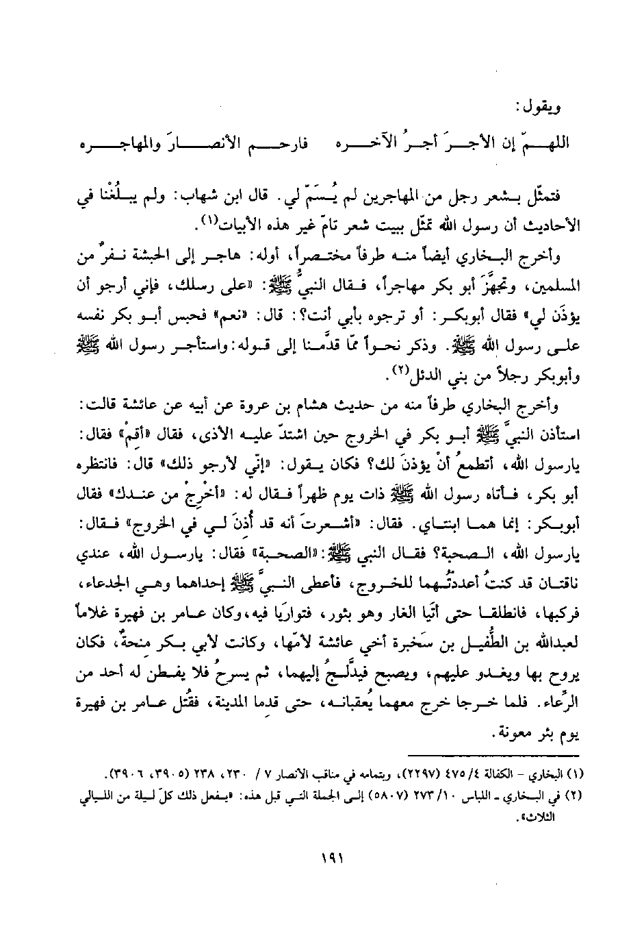 (اللَّهُمَّ إِن الْأجر أجر الْآخِرَه ... فَارْحَمْ الْأَنْصَار والمهاجره)