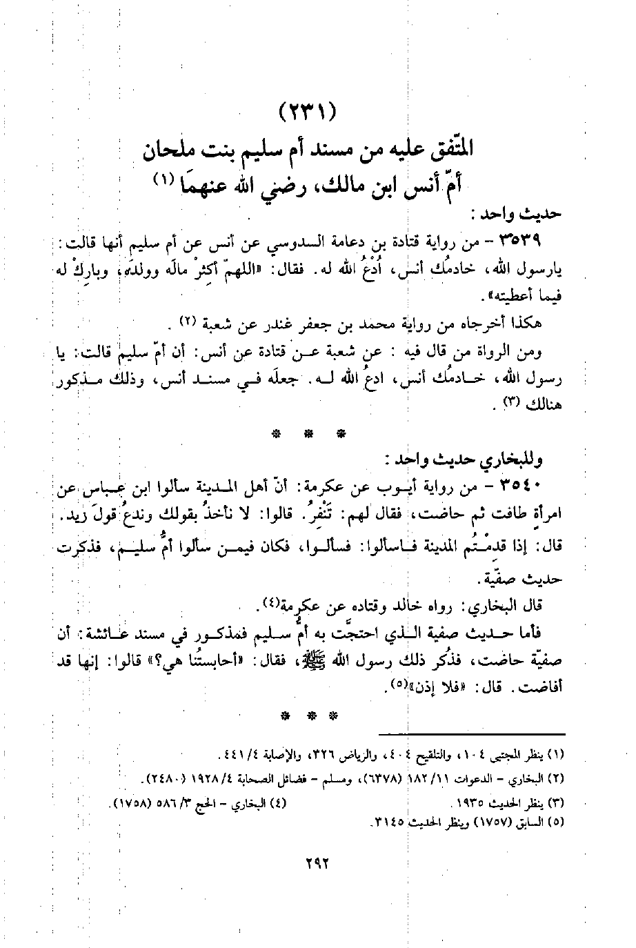 (231) الْمُتَّفق عَلَيْهِ من مُسْند أم سليم بنت ملْحَان أم أنس ابْن مَالك، رَضِي الله عَنْهُمَا