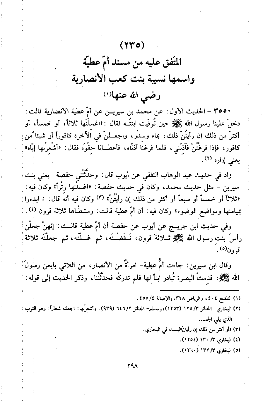 (235) الْمُتَّفق عَلَيْهِ من مُسْند أم عَطِيَّة وَاسْمهَا نسيبة بنت كَعْب الْأَنْصَارِيَّة رَضِي الله عَنْهَا