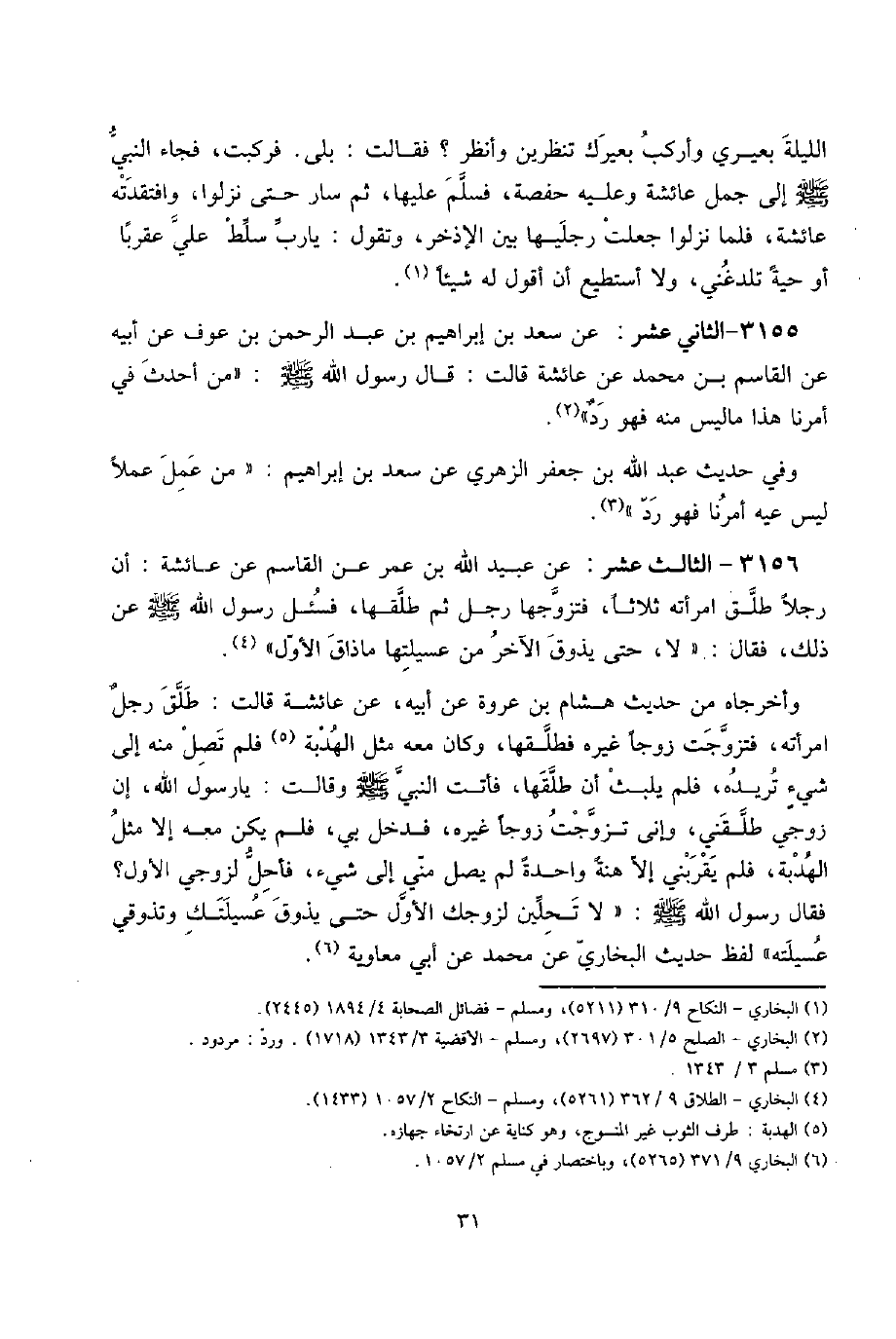 3155 - الثَّانِي عشر: عَن سعد بن إِبْرَاهِيم بن عبد الرَّحْمَن بن عَوْف عَن أَبِيه عَن الْقَاسِم بن مُحَمَّد عَن عَائِشَة قَالَت: قَالَ رَسُول الله صلى الله عَلَيْهِ وَسلم: " من أحدث فِي أمرنَا هَذَا مَا لَيْسَ مِنْهُ فَهُوَ ردٌ ".