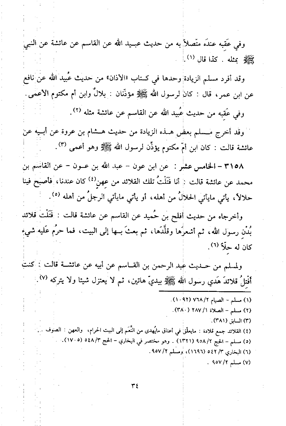 3158 - الْخَامِس عشر: عَن ابْن عون - عبد الله بن عون - عَن الْقَاسِم بن مُحَمَّد عَن عَائِشَة قَالَت: أَنا فتلت تِلْكَ القلائد من عهنٍ كَانَ عندنَا، فَأصْبح فِينَا حَلَالا، يَأْتِي مَا يَأْتِي الْحَلَال من أَهله، أَو يَأْتِي مَا يَأْتِي الرجل من أَهله.