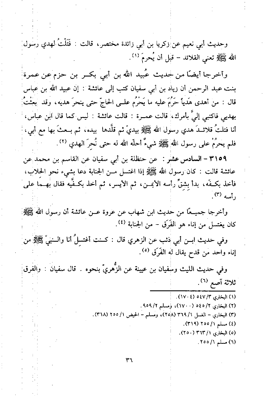 3159 - السَّادِس عشر: عَن حَنْظَلَة بن أبي سُفْيَان عَن الْقَاسِم بن مُحَمَّد عَن عَائِشَة قَالَت: كَانَ رَسُول الله صلى الله عَلَيْهِ وَسلم إِذا اغْتسل من الْجَنَابَة دَعَا بِشَيْء نَحْو الحلاب، فَأخذ بكفه، بَدَأَ بشق رَأسه الْأَيْمن، ثمَّ الْأَيْسَر، ثمَّ أَخذ بكفيه فَقَالَ بهما على رَأسه.