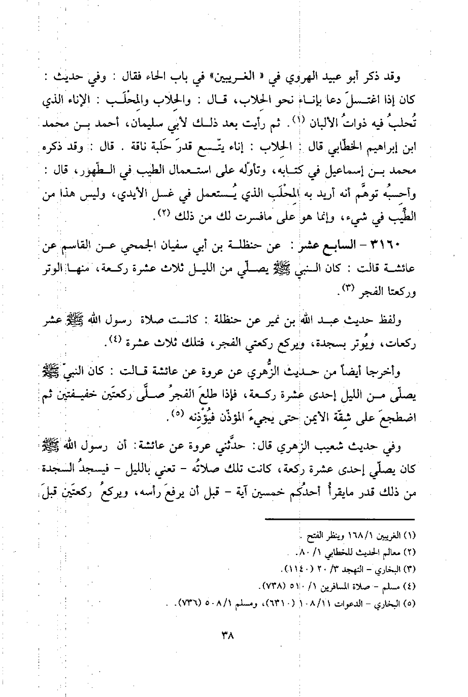 3160 - السَّابِع عشر: عَن حَنْظَلَة بن أبي سُفْيَان الجُمَحِي عَن الْقَاسِم عَن عَائِشَة قَالَت: كَانَ النَّبِي صلى الله عَلَيْهِ وَسلم يُصَلِّي من اللَّيْل ثَلَاث عشرَة رَكْعَة، مِنْهَا الْوتر وركعتا الْفجْر.