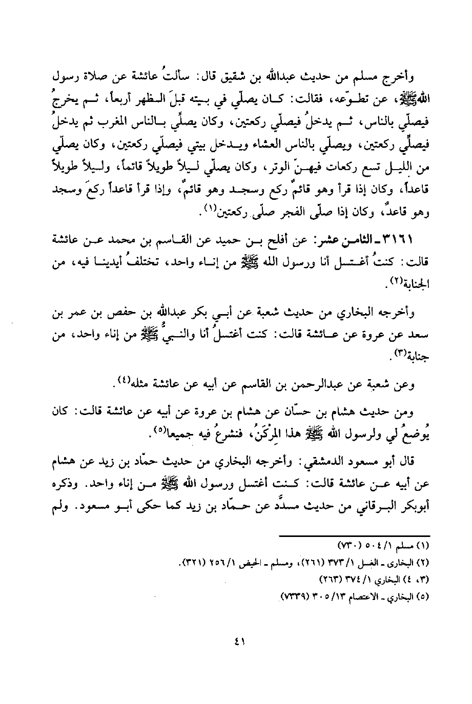 3161 - الثَّامِن عشر: عَن أَفْلح بن حميد عَن الْقَاسِم بن مُحَمَّد عَن عَائِشَة قَالَت: كنت أَغْتَسِل أَنا وَرَسُول الله صلى الله عَلَيْهِ وَسلم من إِنَاء وَاحِد، تخْتَلف أَيْدِينَا فِيهِ، من الْجَنَابَة.