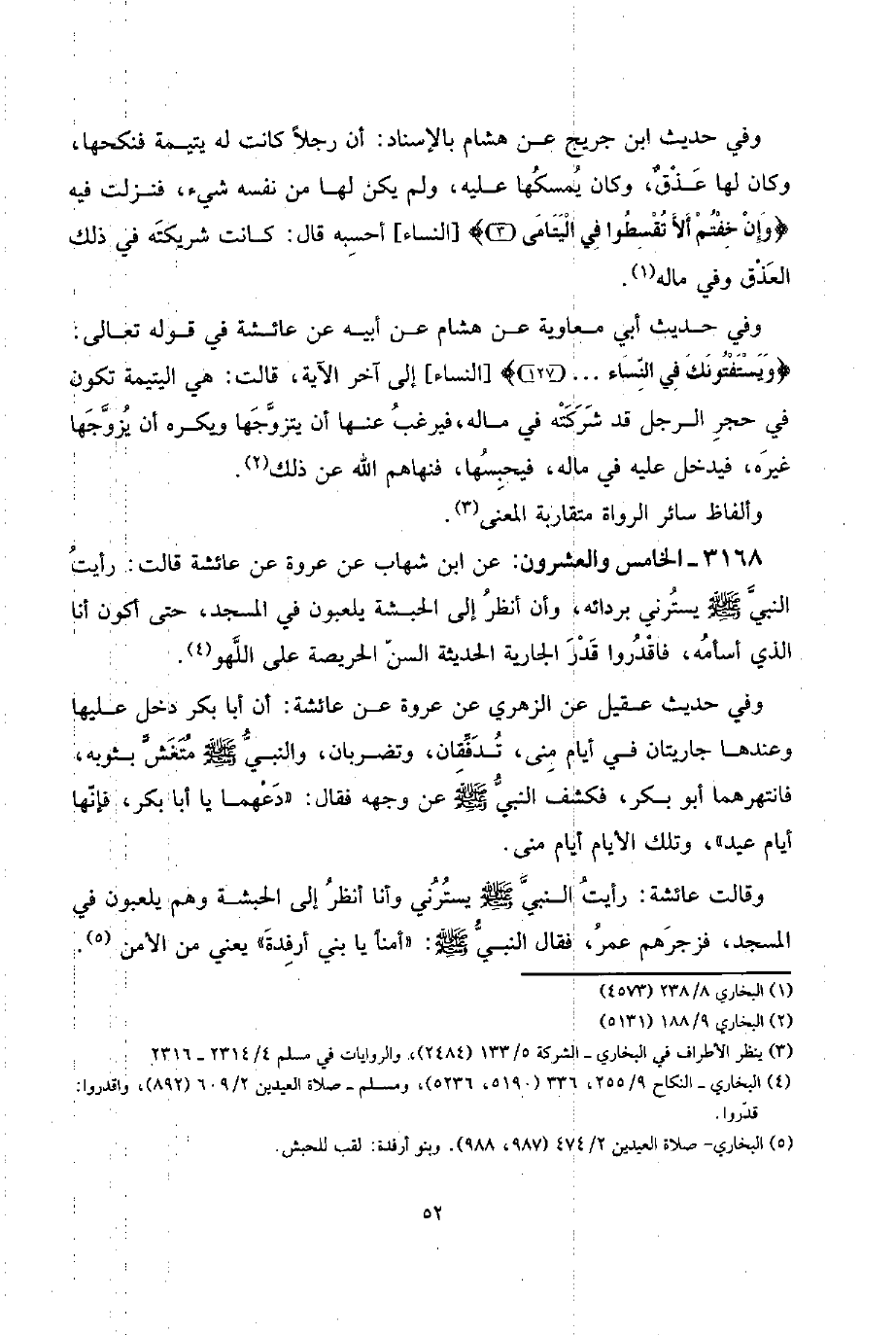 3168 - الْخَامِس وَالْعشْرُونَ: عَن ابْن شهَاب عَن عُرْوَة عَن عَائِشَة قَالَت: رَأَيْت النَّبِي صلى الله عَلَيْهِ وَسلم يسترني بردائه، وَأَن أنظر إِلَى الْحَبَشَة يَلْعَبُونَ فِي الْمَسْجِد، حَتَّى أكون أَنا الَّذِي أسأمه، فاقدروا قدر الْجَارِيَة الحديثة السن الحريصة على اللَّهْو.