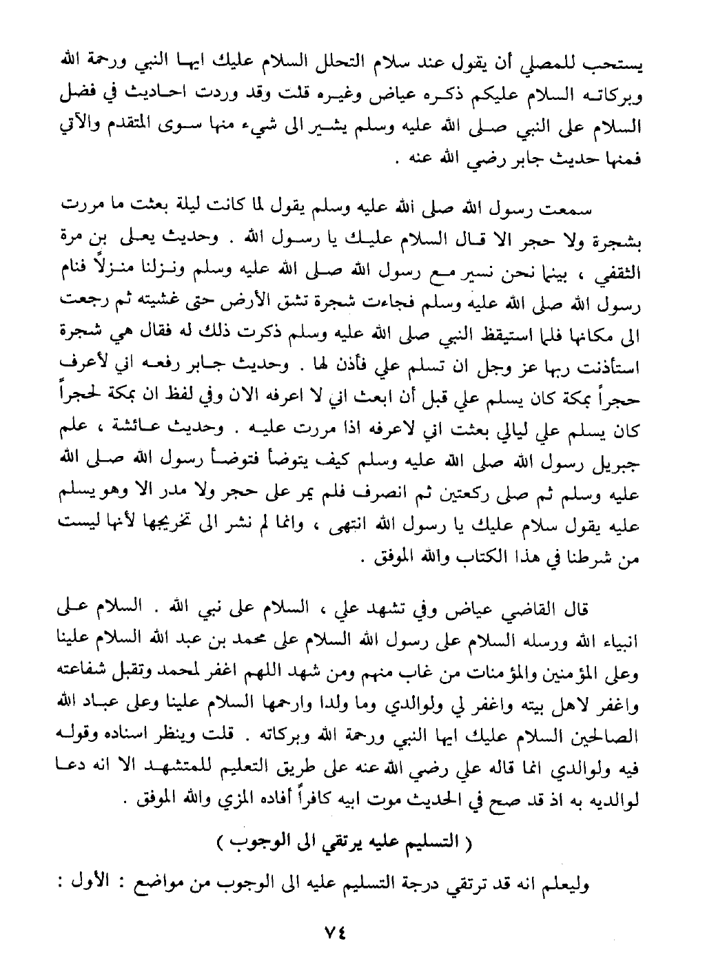 وليعلم أنه قد يرتقي درجة التسلم عليه إلى الوجوب من مواضع: الأول: