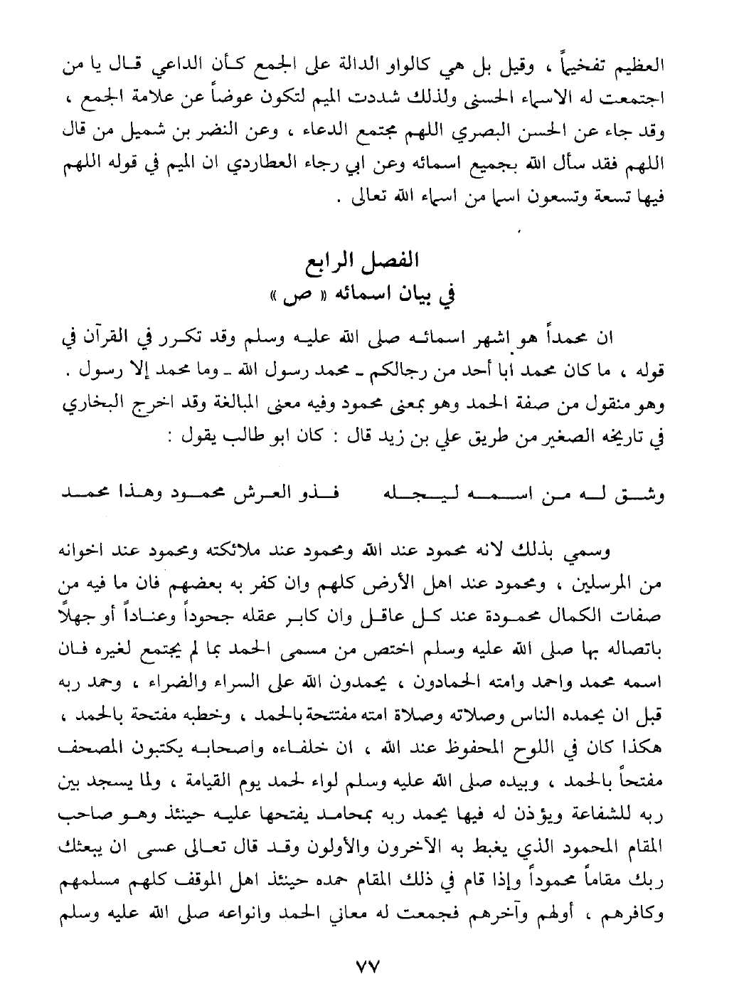 الفصل الرابع: في بيان أسمائه " - صلى الله عليه وسلم - "