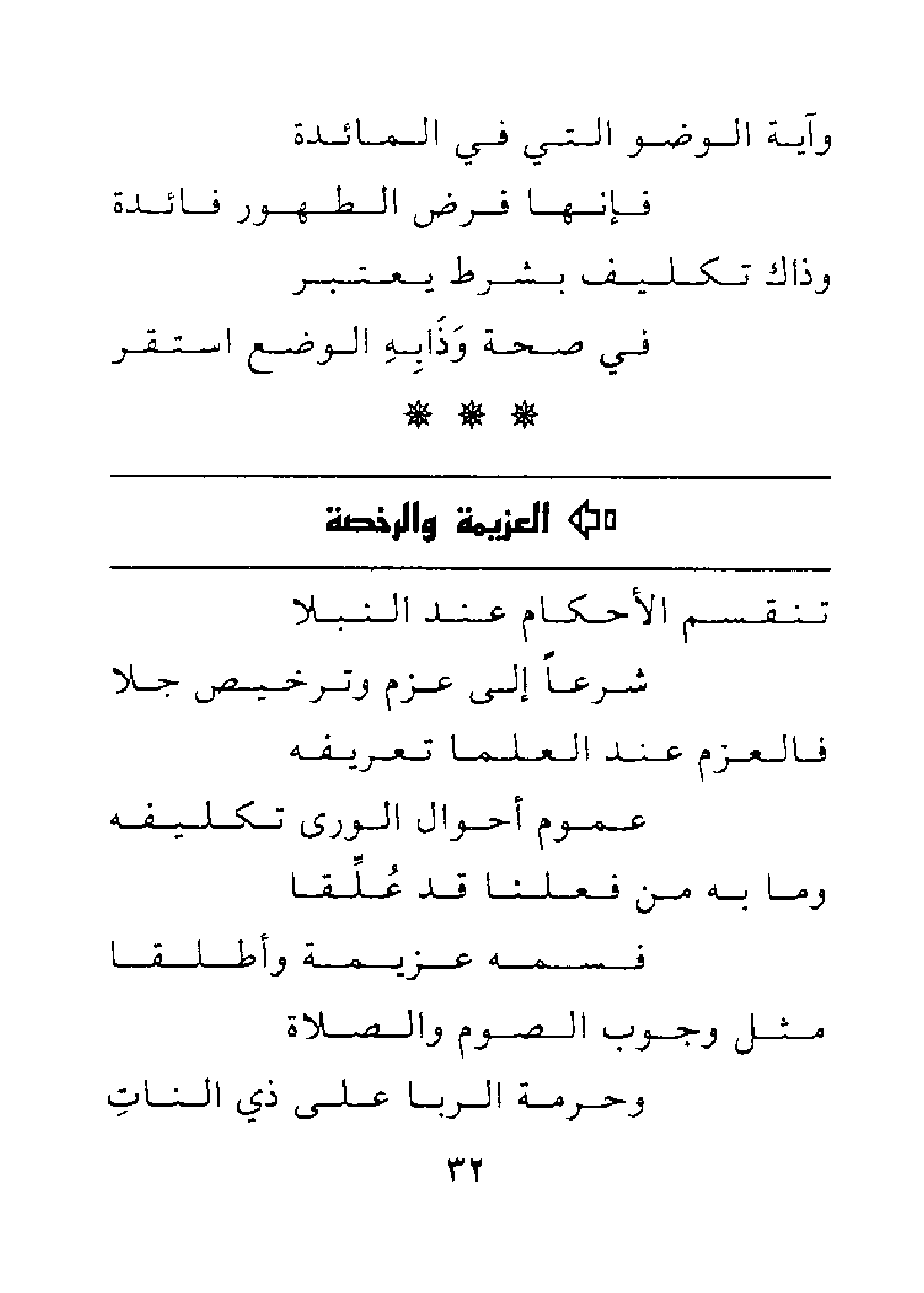 تنقسم الأحكام عند النبلا … شرعاً إلى عزم وترخيص جلا