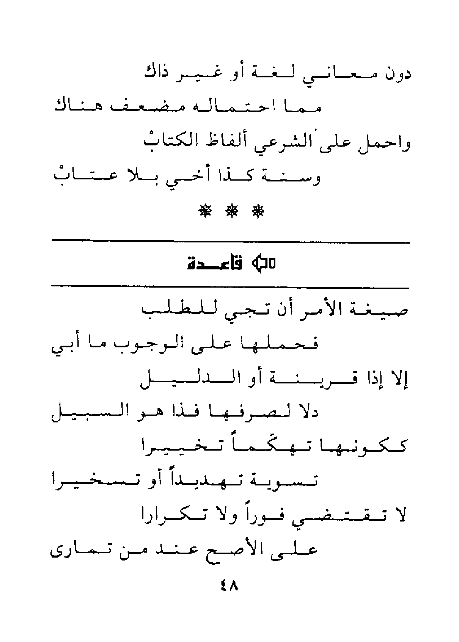 وأحمل على الشرعي ألفاظ الكتابْ … وسنة كذا أخي بلا عتابْ