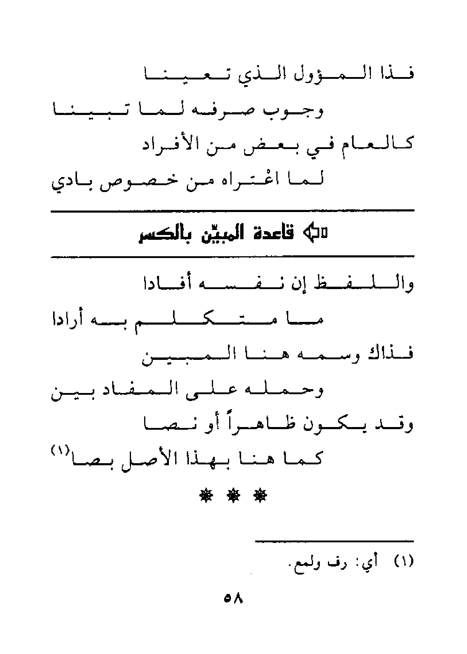 فذاك وسمه هنا المبين … وحمله على المفاد بين