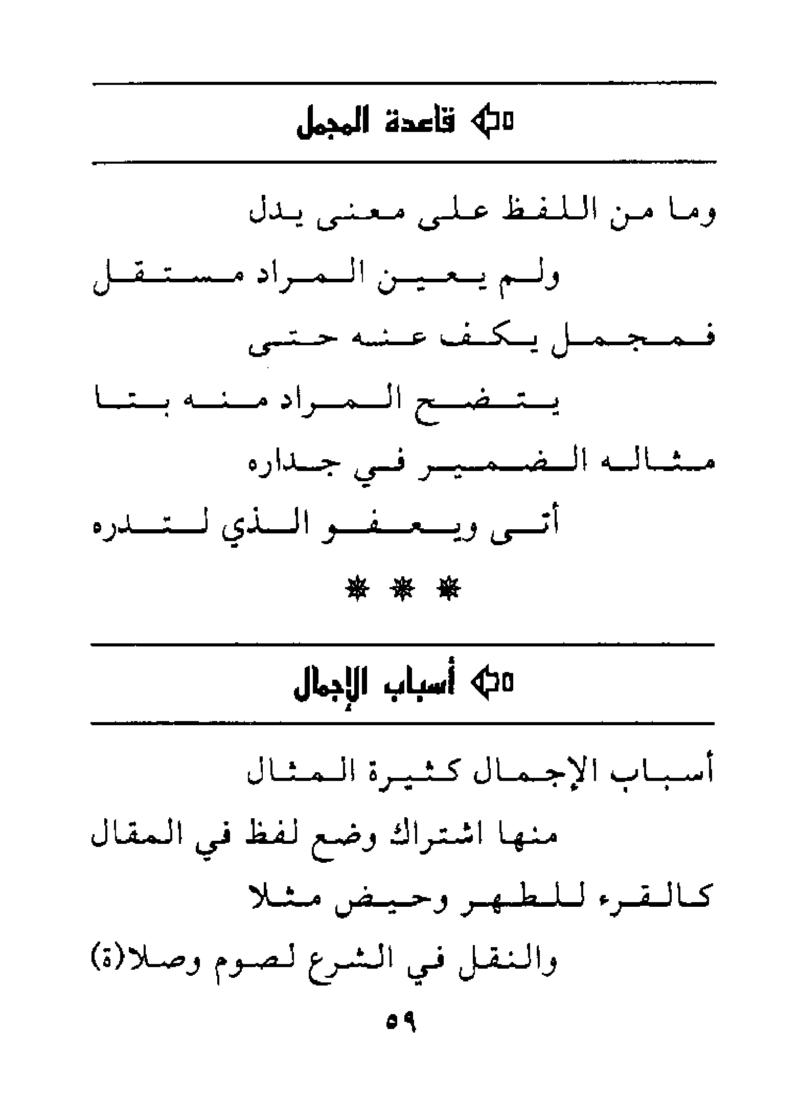فمجمل يكف عنه حتى … يتضح المراد منه بتا