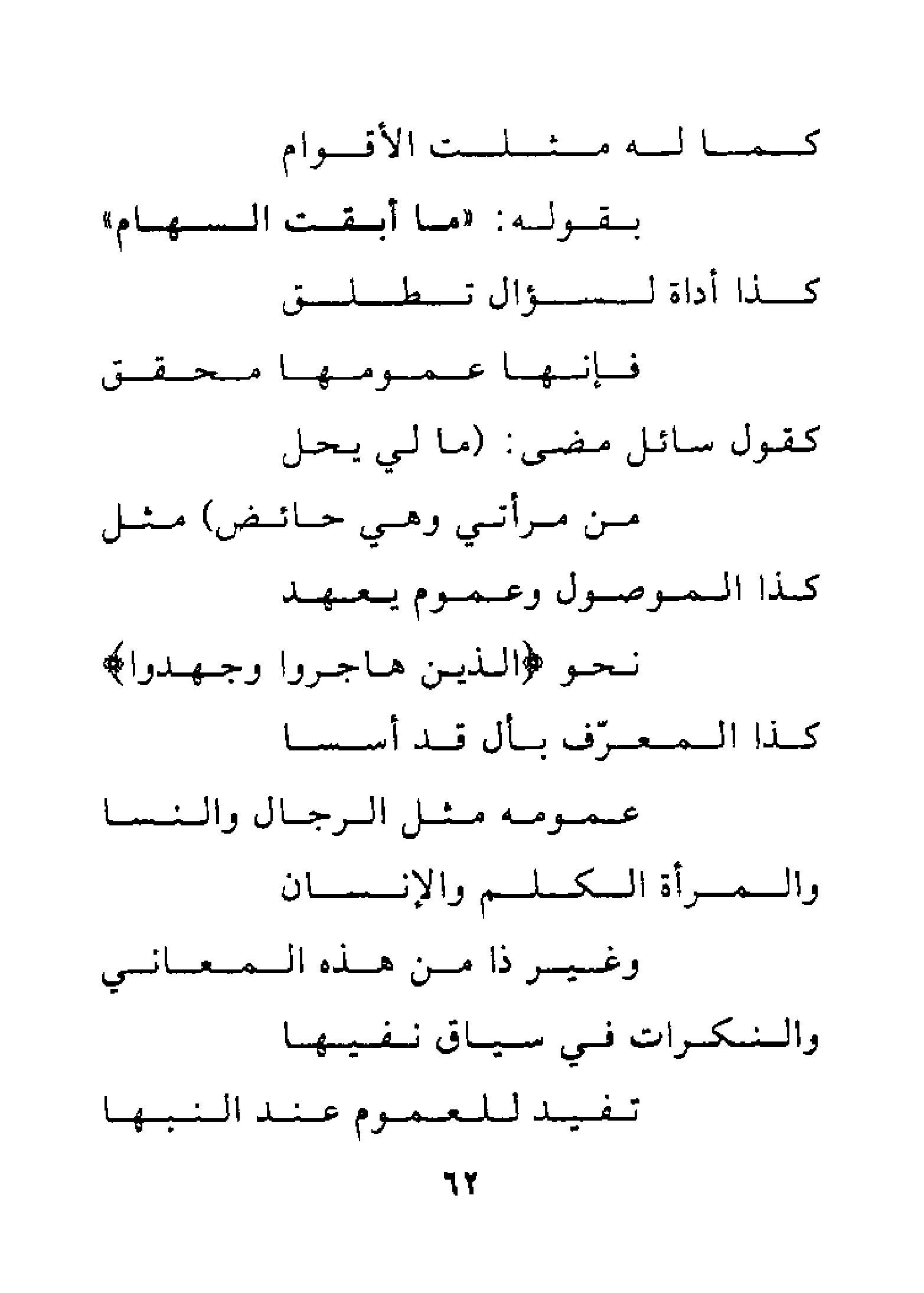كذا الموصول وعموم يعهد … نحو {الَّذِينَ هَاجَرُوا وَجَاهَدُوا}