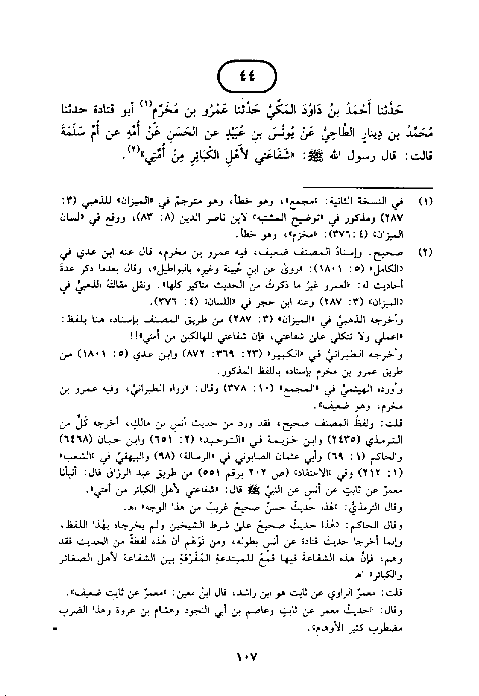44 - حَدَّثَنَا أَحْمَدُ بْنُ دَاوُدَ الْمَكِّيُّ حَدَّثَنَا عَمْرُو بْنُ مُخَرَّمٍ أَبُو قَتَادَةَ حَدَّثَنَا مُحَمَّدُ بْنُ دِينَارٍ الطَّاحِيُّ عَنْ يُونُسَ بْنِ عُبَيْدٍ عَنِ الْحَسَنِ عَنْ أُمِّهِ عَنْ أُمِّ سَلَمَةَ قَالَتْ قَالَ رَسُولُ اللَّهِ صَلَّى اللَّهُ عَلَيْهِ وَسَلَّمَ شَفَاعَتِي لِأَهْلِ الْكَبَائِرِ مِنْ أُمَّتِي.
