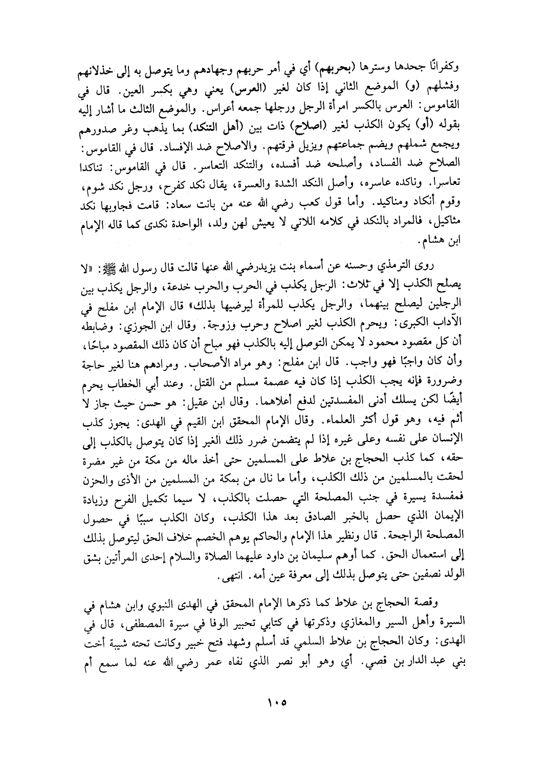 وَأَخْرَجَ الْإِمَامُ أَحْمَدُ عَنْ أَسْمَاءَ بِنْتِ يَزِيدَ - رَضِيَ اللَّهُ عَنْهَا - قَالَتْ قَالَ رَسُولُ اللَّهِ - صَلَّى اللهُ عَلَيْهِ وَسَلَّمَ - «مَنْ ذَبَّ عَنْ عِرْضِ أَخِيهِ بِالْغَيْبِ كَانَ حَقًّا عَلَى اللَّهِ أَنْ يُعْتِقَهُ مِنْ النَّارِ» وَإِسْنَادُهُ حَسَنٌ.