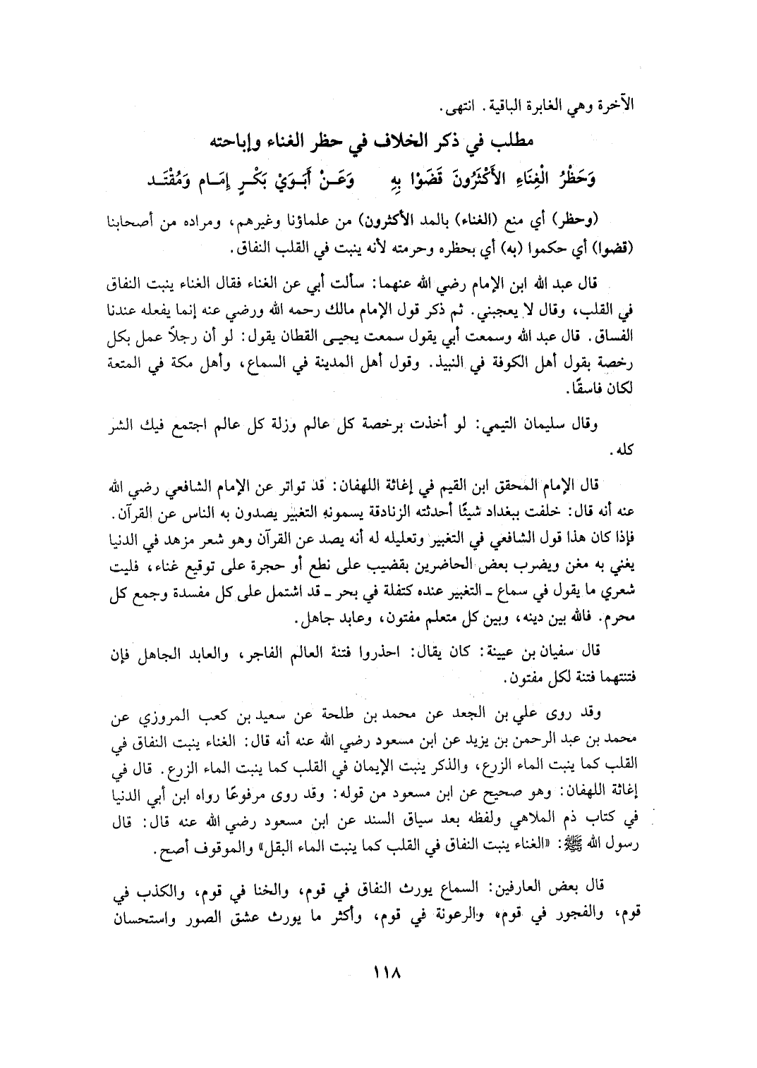 (فَرْعٌ) : يُكْرَهُ لِكُلٍّ مِنْ الزَّوْجَيْنِ التَّحَدُّثُ بِمَا صَارَ بَيْنَهُمَا وَلَوْ لِضَرَّتِهَا، جَزَمَ بِهِ فِي الْإِقْنَاعِ، وَحَرَّمَهُ سَيِّدُنَا الْإِمَامُ الْكَبِيرُ وَلِيُّ اللَّهِ الشَّيْخُ عَبْدُ الْقَادِرِ - رَضِيَ اللَّهُ عَنْهُ -، لِأَنَّهُ مِنْ السِّرِّ، وَإِفْشَاءُ السِّرِّ حَرَامٌ، وَذَكَرَهُ فِي الْإِقْنَاعِ، وَكَذَا حَرَّمَهُ الْأَدَمِيُّ الْبَغْدَادِيُّ.
