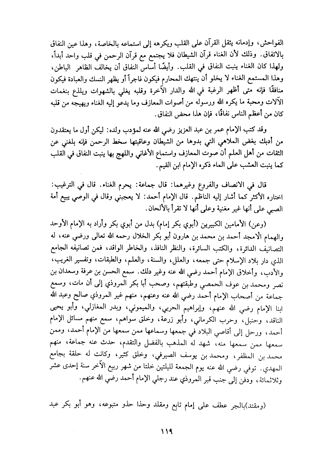 (ثُمَّ) هِيَ حَرْفُ عَطْفٍ تُفِيدُ التَّرْتِيبَ وَالتَّرَاخِيَ، وَكَأَنَّهُ عَطَفَ بِهَا عَلَى مَا قَبْلَهَا لِشِدَّةِ حُرْمَةِ اللَّعْنِ، فَبَيْنَهُ وَبَيْنَ مَا قَبْلَهُ بَوْنٌ فِي الْحُرْمَةِ، فَيَحْرُمُ إفْشَاءُ (لَعْنٍ) وَأَصْلُهُ الطَّرْدُ وَالْإِبْعَادُ مِنْ اللَّهِ تَعَالَى، وَمِنْ الْخَلْقِ السَّبُّ وَالدُّعَاءُ كَمَا فِي النِّهَايَةِ.