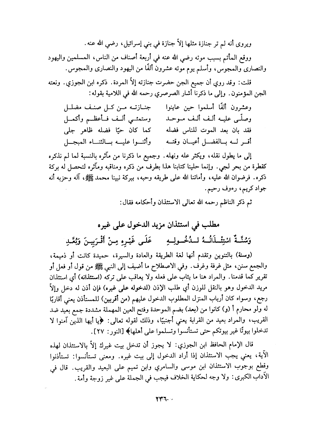 وَظَاهِرُ كَلَامِ الْإِمَامِ ابْنِ الْجَوْزِيِّ أَنَّ الْإِنْكَارَ وَاجِبٌ كَمَا قَدَّمْنَا، فَإِنَّ قَوْلَهُ فَعَلَيْهِ أَنْ يُرِيقَ خَمْرَهُ وَيَمْنَعَهُ وَكَذَلِكَ عَلَيْهِ أَنْ يَمْنَعَهُ مِنْ الزِّنَا ظَاهِرٌ فِي الْوُجُوبِ كَمَا لَا يَخْفَى. وَهَذَا - وَاَللَّهُ أَعْلَمُ - أَظْهَرُ حَيْثُ تَوَفَّرَتْ الشُّرُوطُ الْمُتَقَدِّمَةُ وَاَللَّهُ أَعْلَمُ. قَالَ اللَّهُ تَعَالَى {يَا أَيُّهَا الَّذِينَ آمَنُوا قُوا أَنْفُسَكُمْ وَأَهْلِيكُمْ نَارًا} [التحريم: 6] قَالَ سَيِّدُنَا الْإِمَامُ عَلِيٌّ رِضْوَانُ اللَّهِ عَلَيْهِ أَدِّبُوهُمْ وَعَلِّمُوهُمْ.