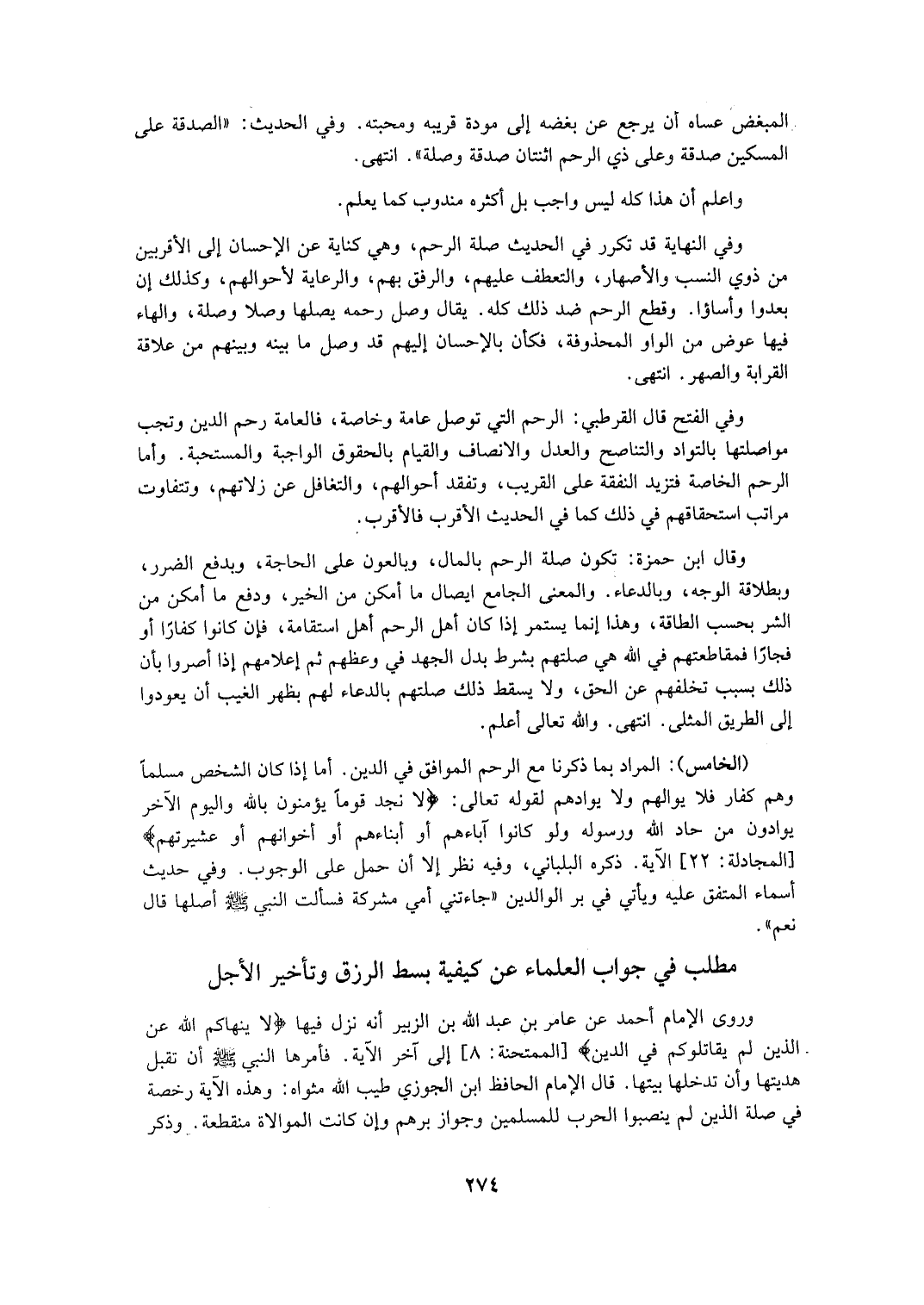 وَقَدْ قَالَ الْإِمَامُ أَحْمَدُ لِلَّذِي تَشْتُمُهُ ابْنَةُ عَمِّهِ: إذَا لَقِيتَهَا سَلِّمْ عَلَيْهَا اقْطَعْ الْمُصَارَمَةَ. فَظَاهِرُ هَذِهِ الرِّوَايَةِ أَنَّ السَّلَامَ يَقْطَعُهَا مُطْلَقًا. وَجَزَمَ بِهِ ابْنُ حَمْدَانَ وَالسَّامِرِيُّ وَغَيْرُهُمَا، وَقَطَعَ بِهِ فِي الْإِقْنَاعِ وَاَللَّهُ أَعْلَمُ.