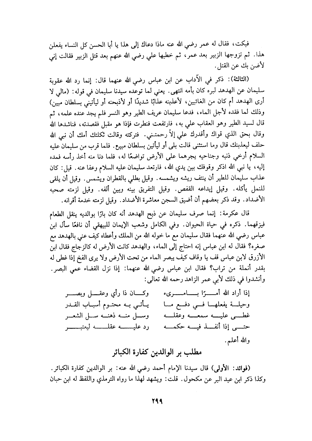 وَفَضَائِلُ الْإِمَامِ أَحْمَدَ رِضْوَانُ اللَّهِ عَلَيْهِ مَشْهُورَةٌ، وَمَنَاقِبُهُ مَأْثُورَةٌ، سَارَتْ بِذَكَرِهِ الرُّكْبَانُ، وَبَلَغَ صِيتُهُ كُلَّ قَاصٍ وَدَانٍ، وَمَلَأَ ذِكْرُهُ الْأَمْصَارَ وَالْبُلْدَانَ. وَكُلُّ إمَامٍ فِي عِلْمِ رَسُولِ اللَّهِ - صَلَّى اللهُ عَلَيْهِ وَسَلَّمَ - خَضَعَ لَهُ وَدَانَ. قَالَ فِيهِ الْإِمَامُ الشَّافِعِيُّ - رَضِيَ اللَّهُ عَنْهُمَا -: خَرَجْت مِنْ بَغْدَادَ وَمَا خَلَّفْت بِهَا أَحَدًا أَوْرَعَ وَلَا أَتْقَى وَلَا أَفْقَهَ وَلَا أَعْلَمَ مِنْ أَحْمَدَ بْنِ حَنْبَلٍ.