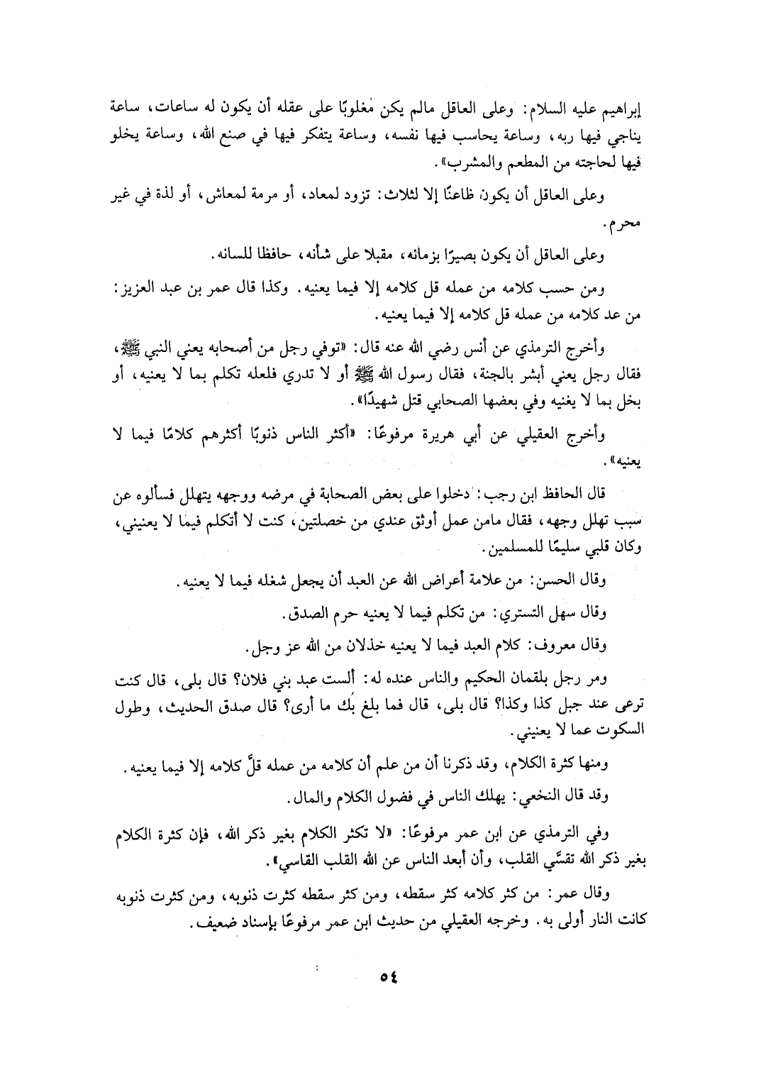 ابْنِ عُمَرَ - رَضِيَ اللَّهُ عَنْهُمَا -. وَمَا أَحْسَنَ قَوْلَ الْقَاضِي أَبِي الْحَسَنِ الْجُرْجَانِيِّ لِنَفْسِهِ: