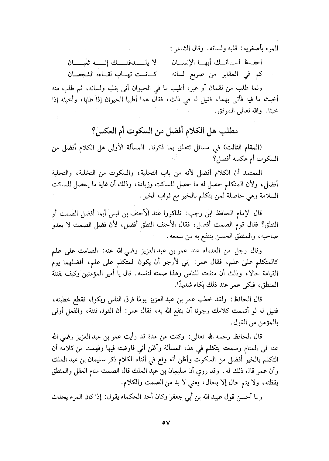وَمِنْ كَلَامِ الْإِمَامِ الشَّافِعِيِّ - رَضِيَ اللَّهُ عَنْهُ -: