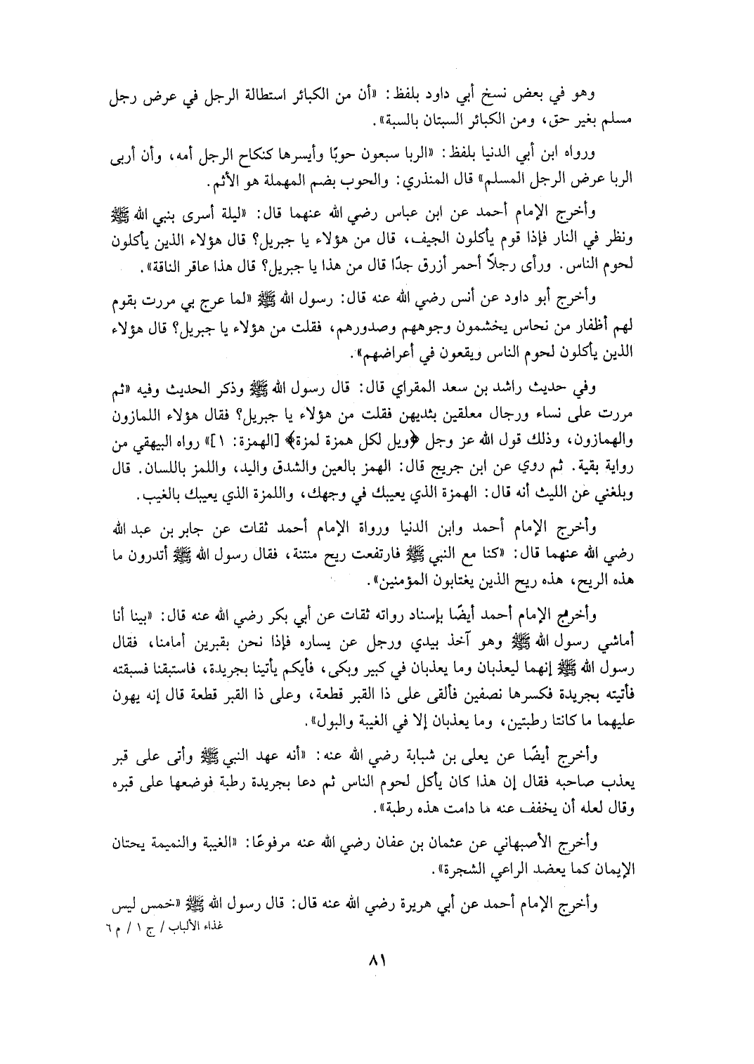 وَفِي الْحَدِيثِ «الْحُمَّى رَائِدُ الْمَوْتِ» رَوَاهُ ابْنُ أَبِي الدُّنْيَا وَغَيْرُهُ مِنْ وُجُوهٍ مُتَعَدِّدَةٍ. ذَكَرَهُ الْإِمَامُ الْحَافِظُ ابْنُ رَجَبٍ فِي كِتَابِهِ الْبِشَارَةِ الْعُظْمَى فِي أَنَّ حَظَّ الْمُؤْمِنِ مِنْ النَّارِ الْحُمَّى. وَالْفَرْجُ الْعَوْرَةُ كَمَا فِي الْقَامُوسِ.