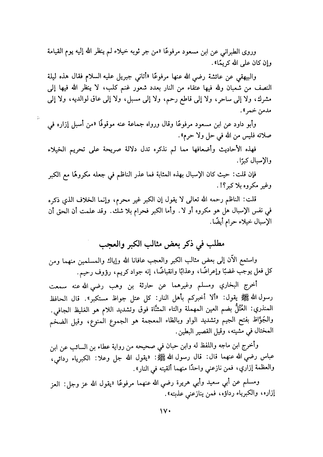 وَرَوَى الطَّبَرَانِيُّ مِنْ حَدِيثِ ابْنِ عَبَّاسٍ - رَضِيَ اللَّهُ عَنْهُمَا - «أَنَّ امْرَأَةً مَرَّتْ عَلَى رَسُولِ اللَّهِ - صَلَّى اللهُ عَلَيْهِ وَسَلَّمَ - مُتَقَلِّدَةً قَوْسًا فَقَالَ: لَعَنَ اللَّهُ الْمُتَشَبِّهَاتِ مِنْ النِّسَاءِ بِالرِّجَالِ» الْحَدِيثَ. وَفِي رِوَايَةٍ لِلْبُخَارِيِّ «لَعَنَ رَسُولُ اللَّهِ - صَلَّى اللهُ عَلَيْهِ وَسَلَّمَ - الْمُخَنَّثِينَ مِنْ الرِّجَالِ، وَالْمُتَرَجِّلَاتِ مِنْ النِّسَاءِ» قَالَ الْحَافِظُ الْمُنْذِرِيُّ: الْمُخَنَّثُ بِفَتْحِ النُّونِ وَكَسْرِهَا مَنْ فِيهِ انْخِنَاثٌ، وَهُوَ التَّكَسُّرُ وَالتَّثَنِّي كَمَا يَفْعَلُهُ النِّسَاءُ لَا الَّذِي يَأْتِي الْفَاحِشَةَ الْكُبْرَى.