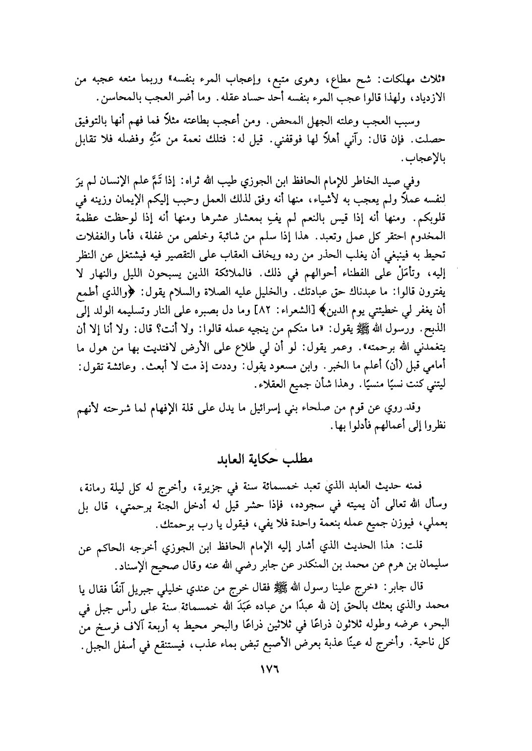 وَحَسَّنَهُ عَنْ جَابِرِ بْنِ سَمُرَةَ - رَضِيَ اللَّهُ عَنْهُ - قَالَ: «رَأَيْت رَسُولَ اللَّهِ - صَلَّى اللهُ عَلَيْهِ وَسَلَّمَ - وَعَلَيْهِ حُلَّةٌ حَمْرَاءُ» وَأَبُو دَاوُد عَنْ هِلَالِ بْنِ عَامِرٍ - رَضِيَ اللَّهُ عَنْهُ - قَالَ: «رَأَيْت النَّبِيَّ - صَلَّى اللهُ عَلَيْهِ وَسَلَّمَ - عَلَى بَغْلَةٍ وَعَلَيْهِ بُرْدٌ أَحْمَرُ» أَوْلَى بِالِاتِّبَاعِ، وَالِاقْتِدَاءُ بِهِ فِيهِ النَّجَاةُ وَالِانْتِفَاعُ. وَحَدِيثُ رَافِعٍ فِي إسْنَادِهِ رَجُلٌ مَجْهُولٌ وَيَحْتَمِلُ أَنَّ تِلْكَ كَانَتْ مُعَصْفَرَةً فَكَرِهَهَا لِذَلِكَ، وَإِنْ قُدِّرَ التَّعَارُضُ فَأَحَادِيثُ الْإِبَاحَةِ أَصَحُّ وَأَثْبَتُ، وَالْأَخْذُ بِهَا أَوْلَى وَأَرْجَحُ.