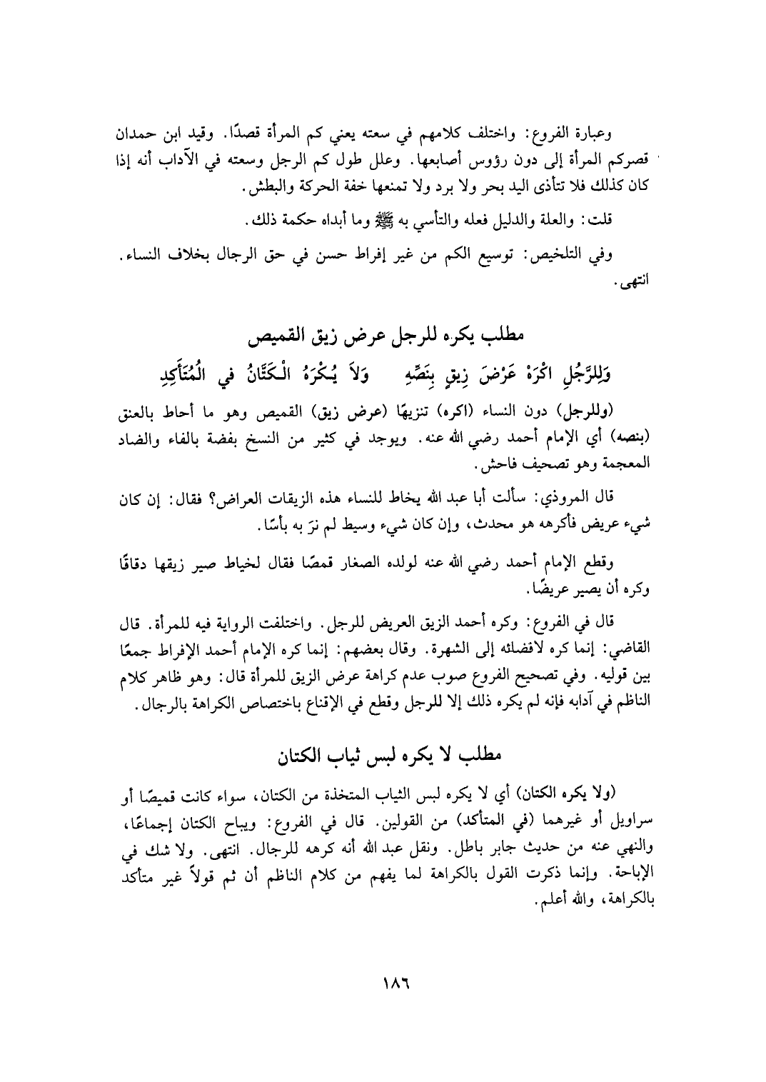 وَرَوَى الْإِمَامُ أَحْمَدُ عَنْ أَبِي أُمَامَةَ - رَضِيَ اللَّهُ عَنْهُ - مَرْفُوعًا «لَا يَسْتَمْتِعُ بِالْحَرِيرِ مَنْ يَرْجُو أَيَّامَ اللَّهِ» . وَرَوَى الْإِمَامُ أَحْمَدُ أَيْضًا عَنْ أَبِي هُرَيْرَةَ - رَضِيَ اللَّهُ عَنْهُ - مَرْفُوعًا «إنَّمَا يَلْبَسُ الْحَرِيرَ فِي الدُّنْيَا مَنْ لَا يَرْجُو أَنْ يَلْبَسَهُ فِي الْآخِرَةِ» . قَالَ الْحَسَنُ: فَمَا بَالُ أَقْوَامٍ يَبْلُغُهُمْ هَذَا عَنْ نَبِيِّهِمْ يَجْعَلُونَ حَرِيرًا فِي ثِيَابِهِمْ وَبُيُوتِهِمْ وَأَخْرَجَ الْإِمَامُ أَحْمَدُ أَيْضًا عَنْ أَبِي أُمَامَةَ - رَضِيَ اللَّهُ عَنْهُ - أَنَّهُ سَمِعَ النَّبِيَّ - صَلَّى اللهُ عَلَيْهِ وَسَلَّمَ - يَقُولُ: «مَنْ كَانَ يُؤْمِنُ بِاَللَّهِ، وَالْيَوْمِ الْآخِرِ فَلَا يَلْبَسُ حَرِيرًا وَلَا ذَهَبًا» . وَأَخْرَجَ الْبَزَّارُ بِإِسْنَادٍ حَسَنٍ عَنْ أَنَسٍ - رَضِيَ اللَّهُ عَنْهُ - مَرْفُوعًا «قَالَ اللَّهُ