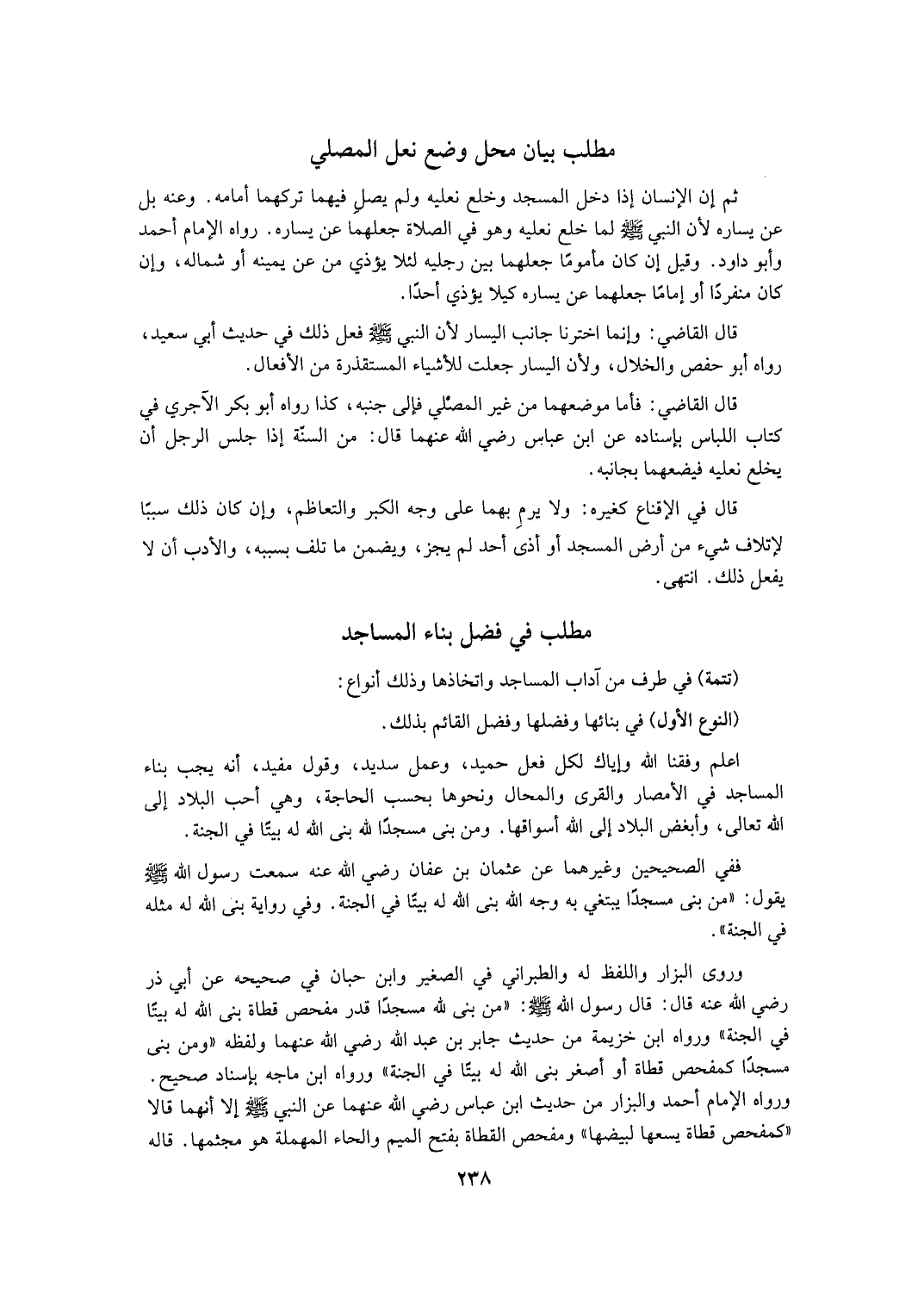 قُلْت: وَالْعِلَّةُ وَالدَّلِيلُ فِعْلُهُ وَالتَّأَسِّي بِهِ - صَلَّى اللهُ عَلَيْهِ وَسَلَّمَ - وَمَا أَبْدَاهُ حِكْمَةُ ذَلِكَ.